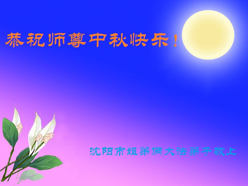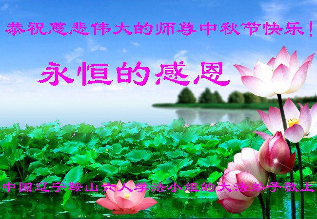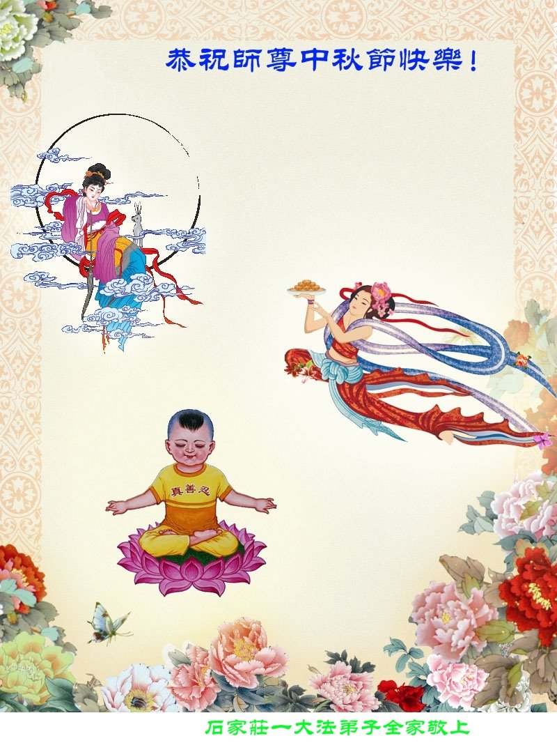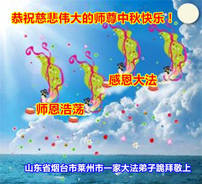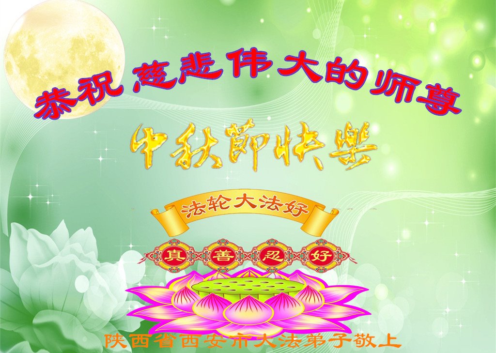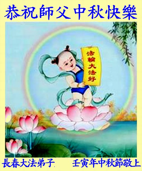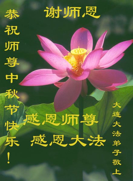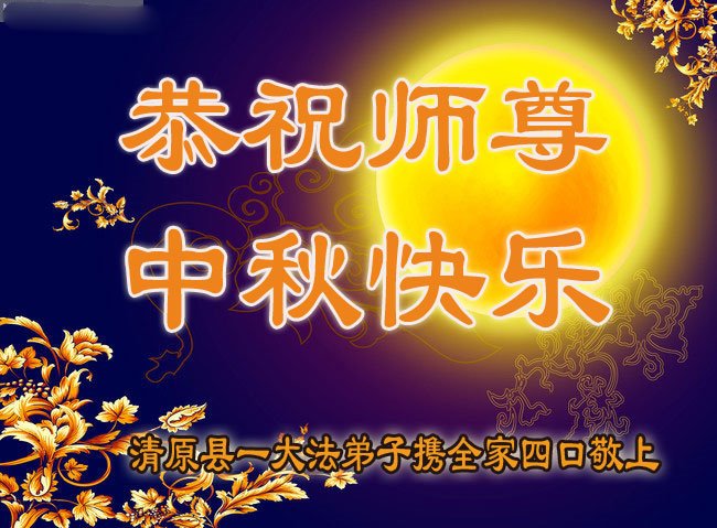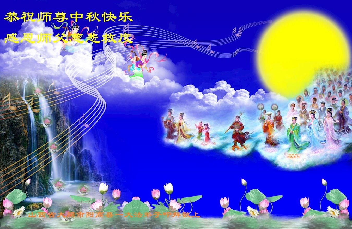 是师父的巨大承受才使我们又迎来了一个温馨的中秋。弟子们怀着感恩的心恭祝恩师中秋佳节快乐!历史走到今天的关键时刻,诚念“九字真言”而逢凶化吉、遇难呈祥的真实例子,证实了法轮大法在人间的神奇,破除了中共的欺世谎言。弟子每一个前進的步伐都浸透着师父的心血,我们一定更加努力,踏踏实实的修好自己,抓紧救度众生,完成史前大愿!