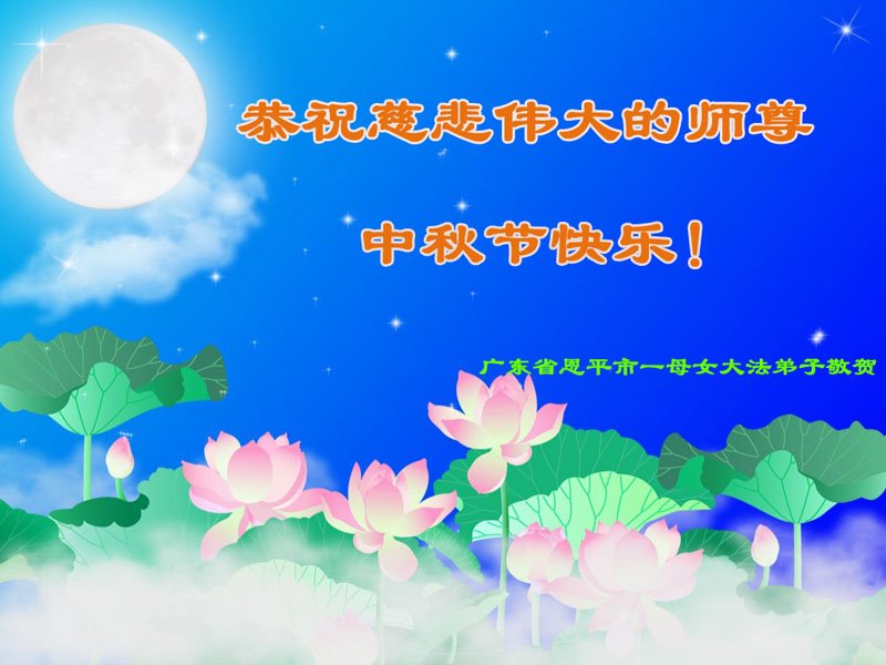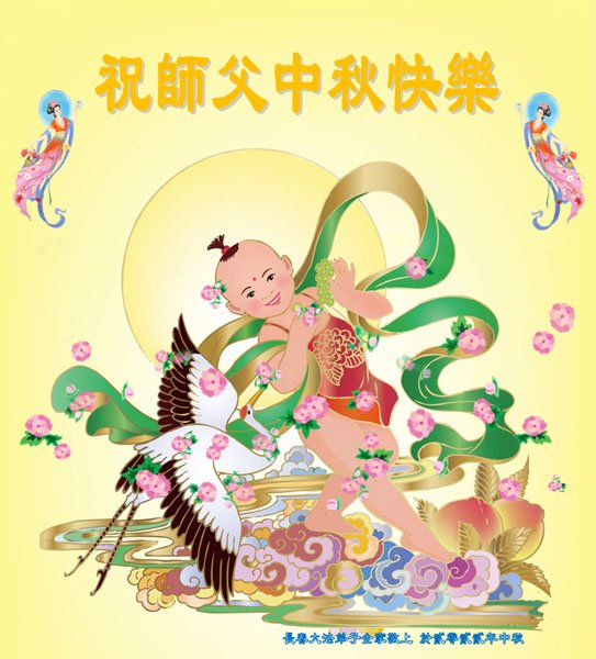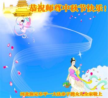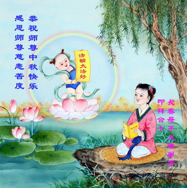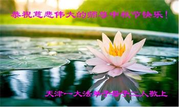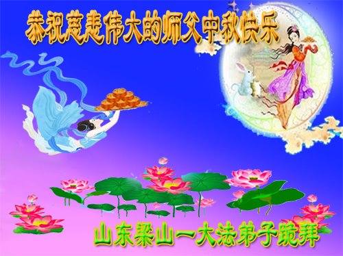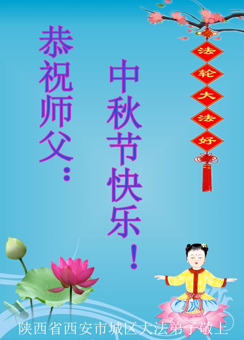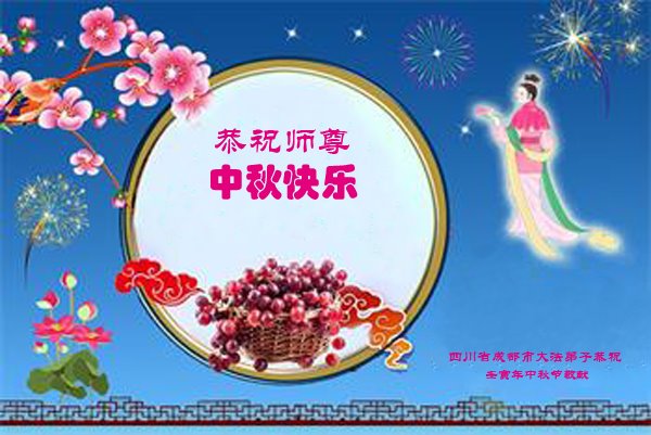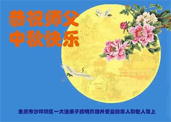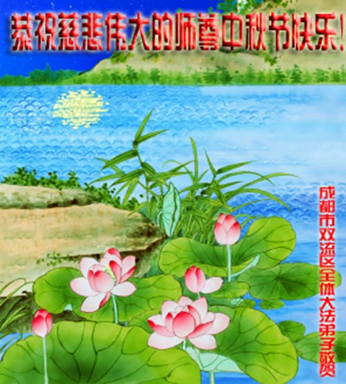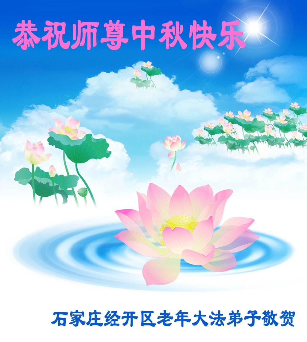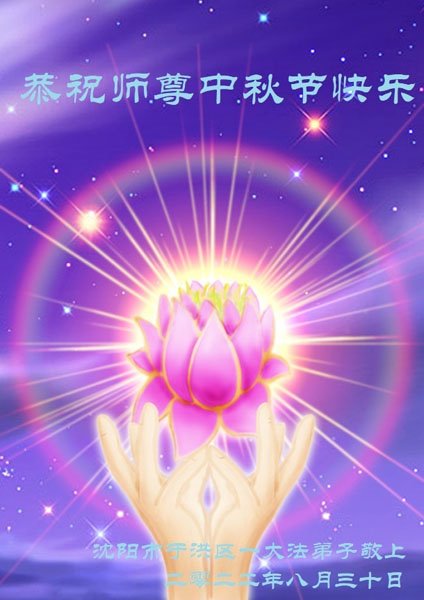 是师父的巨大承受才使我们又迎来了一个温馨的中秋。弟子们怀着感恩的心恭祝恩师中秋佳节快乐!历史走到今天的关键时刻,诚念“九字真言”而逢凶化吉、遇难呈祥的真实例子,证实了法轮大法在人间的神奇,破除了中共的欺世谎言。弟子每一个前進的步伐都浸透着师父的心血,我们一定更加努力,踏踏实实的修好自己,抓紧救度众生,完成史前大愿!