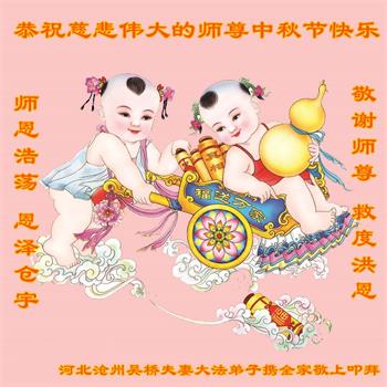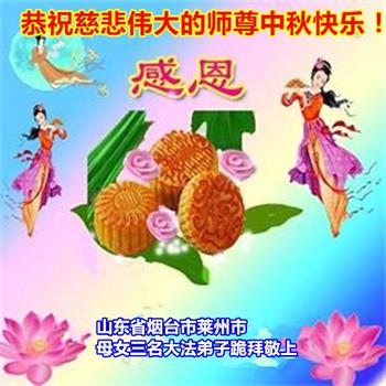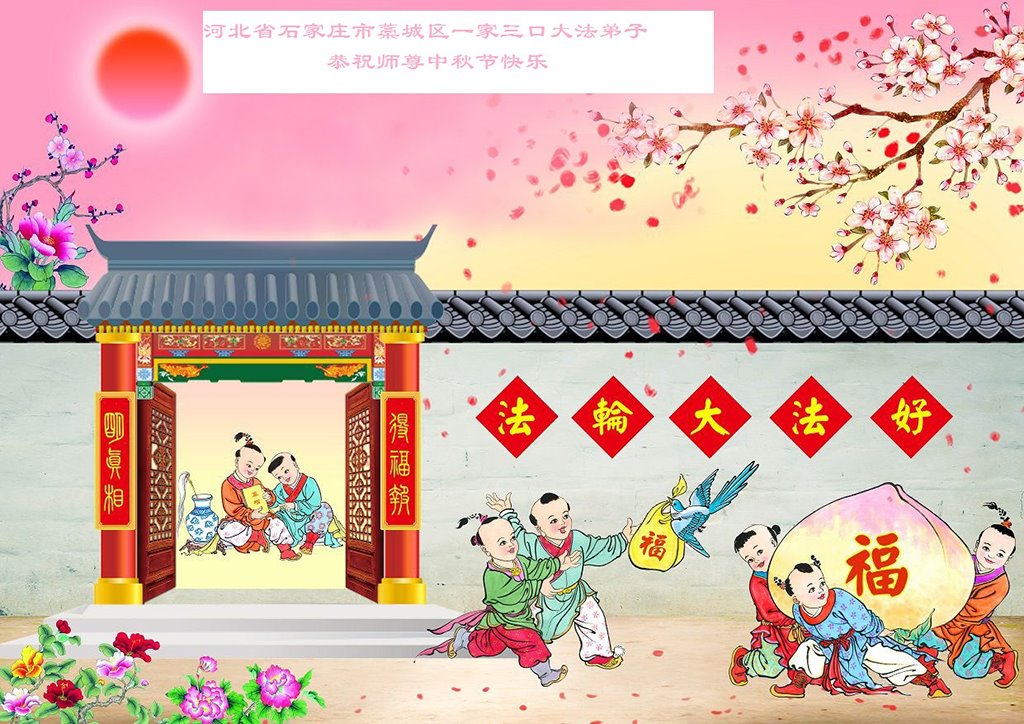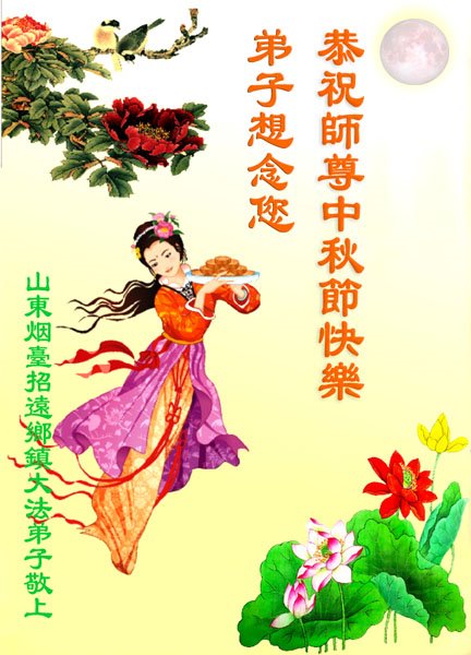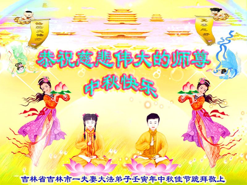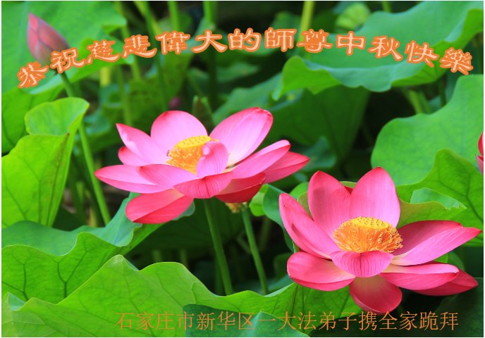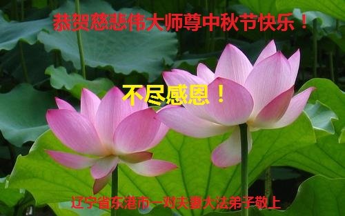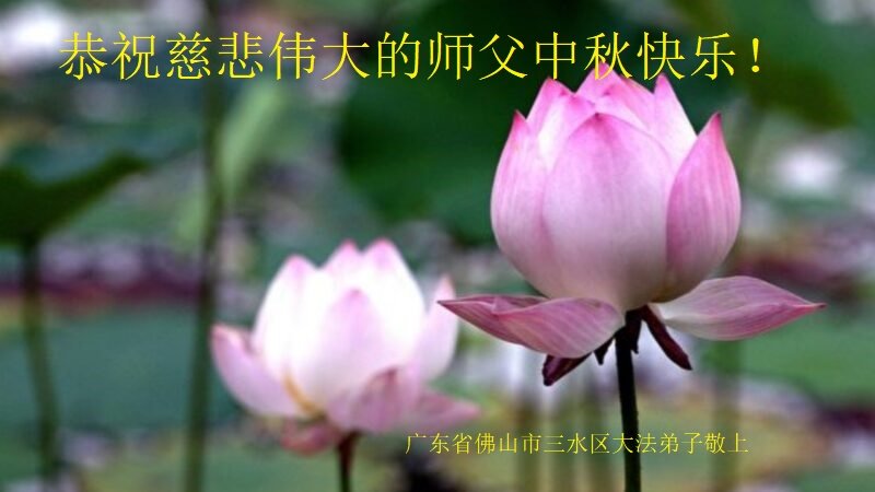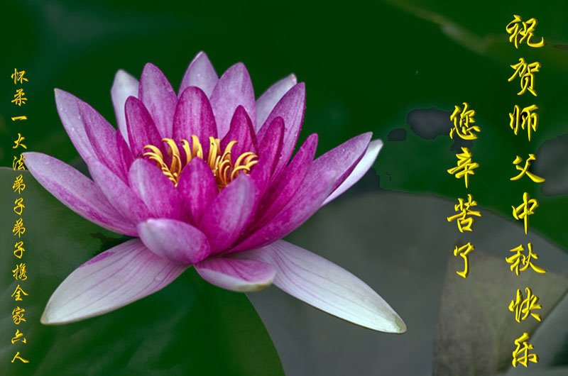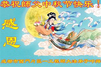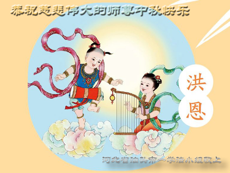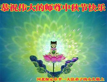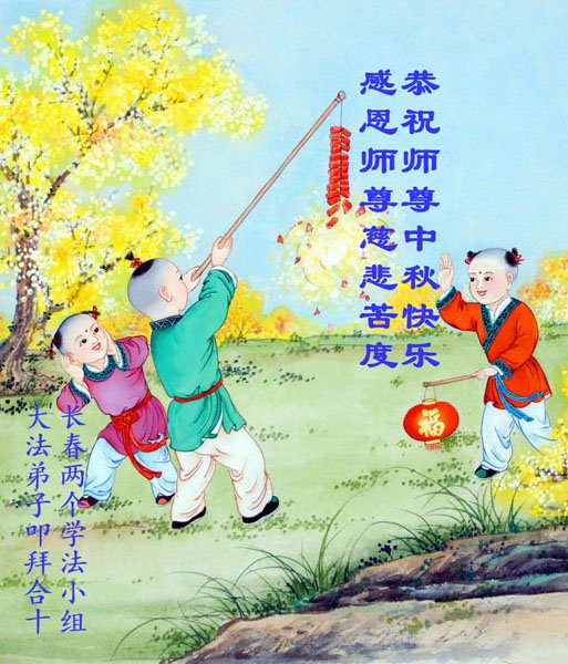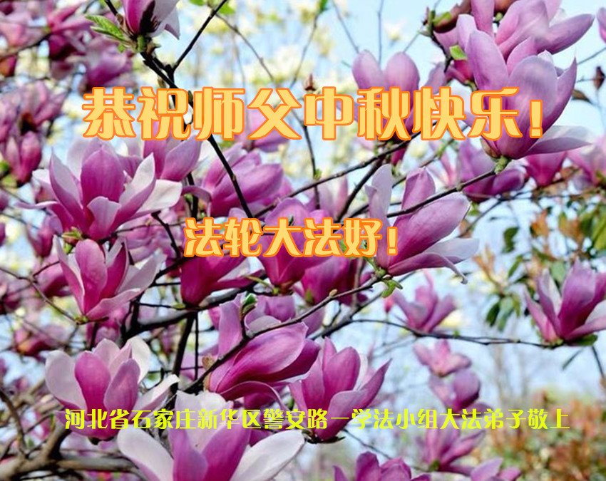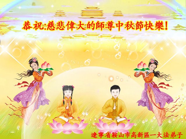 是师父的巨大承受才使我们又迎来了一个温馨的中秋。弟子们怀着感恩的心恭祝恩师中秋佳节快乐!历史走到今天的关键时刻,诚念“九字真言”而逢凶化吉、遇难呈祥的真实例子,证实了法轮大法在人间的神奇,破除了中共的欺世谎言。弟子每一个前進的步伐都浸透着师父的心血,我们一定更加努力,踏踏实实的修好自己,抓紧救度众生,完成史前大愿!