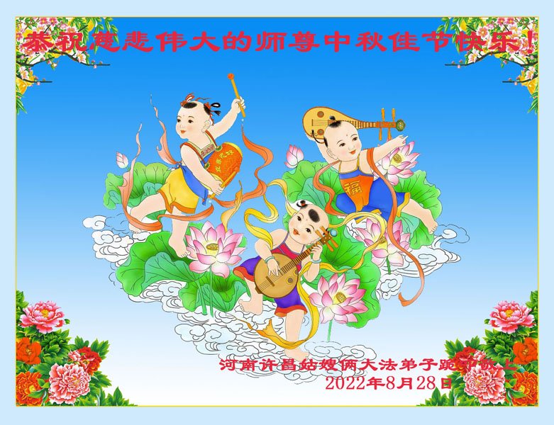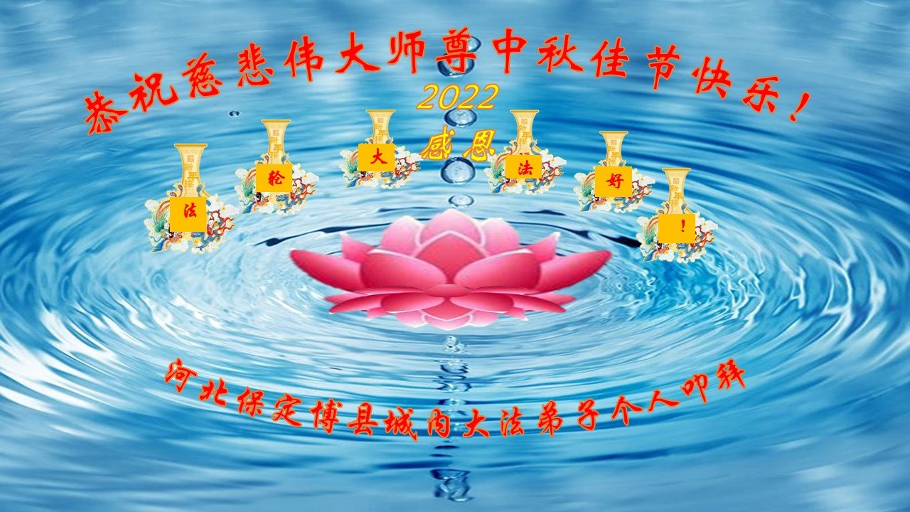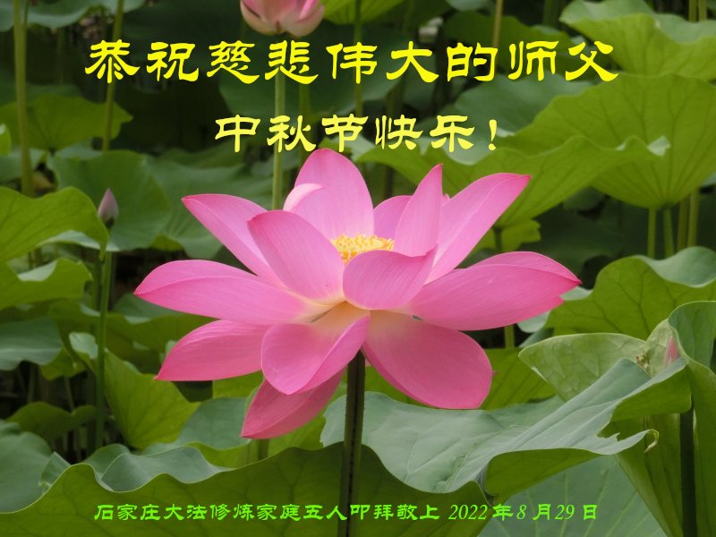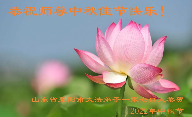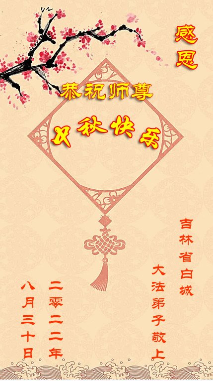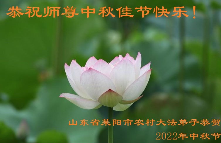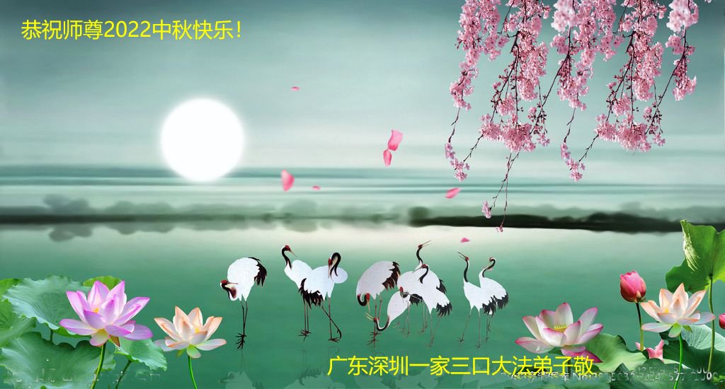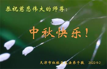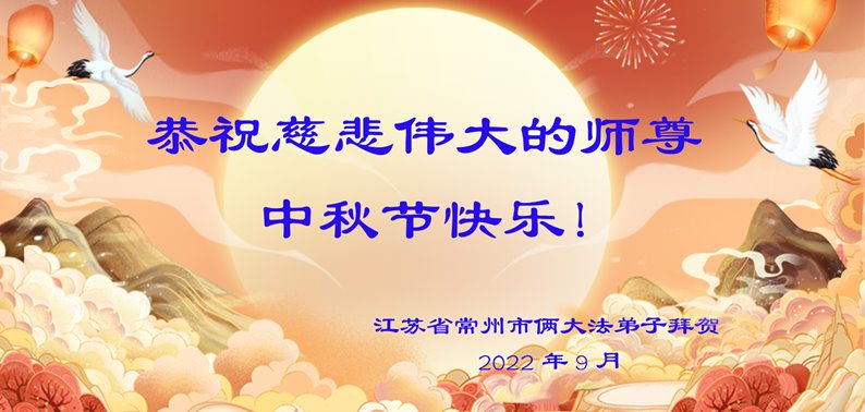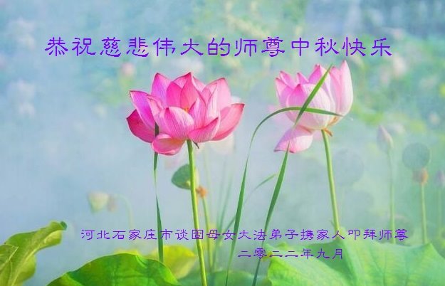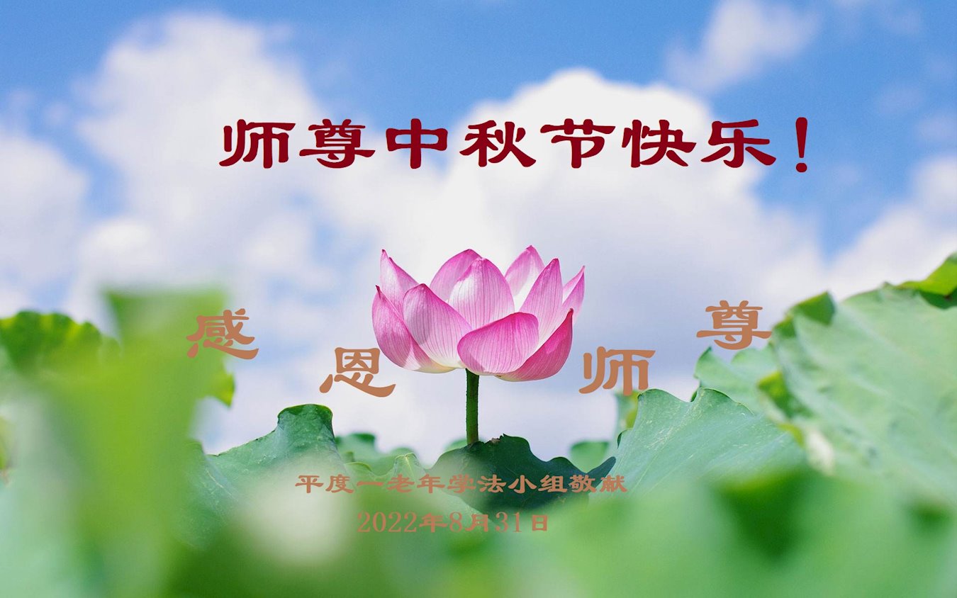 【明慧网二零二二年九月八日】法轮大法洪传世间,李洪志师尊慈悲的教诲和度化弟子,也慈悲的看护着世上每一个有缘人,把法轮大法的甘露洒向世界的每个角落,诚信“法轮大法好、真善忍好”的人们得到了大法给予的福祉。在二零二二年中秋节即将到来之际,明白法轮大法好的中国百姓向尊敬的李大师表达发自心底的感恩,恭祝大法师父中秋节快乐!