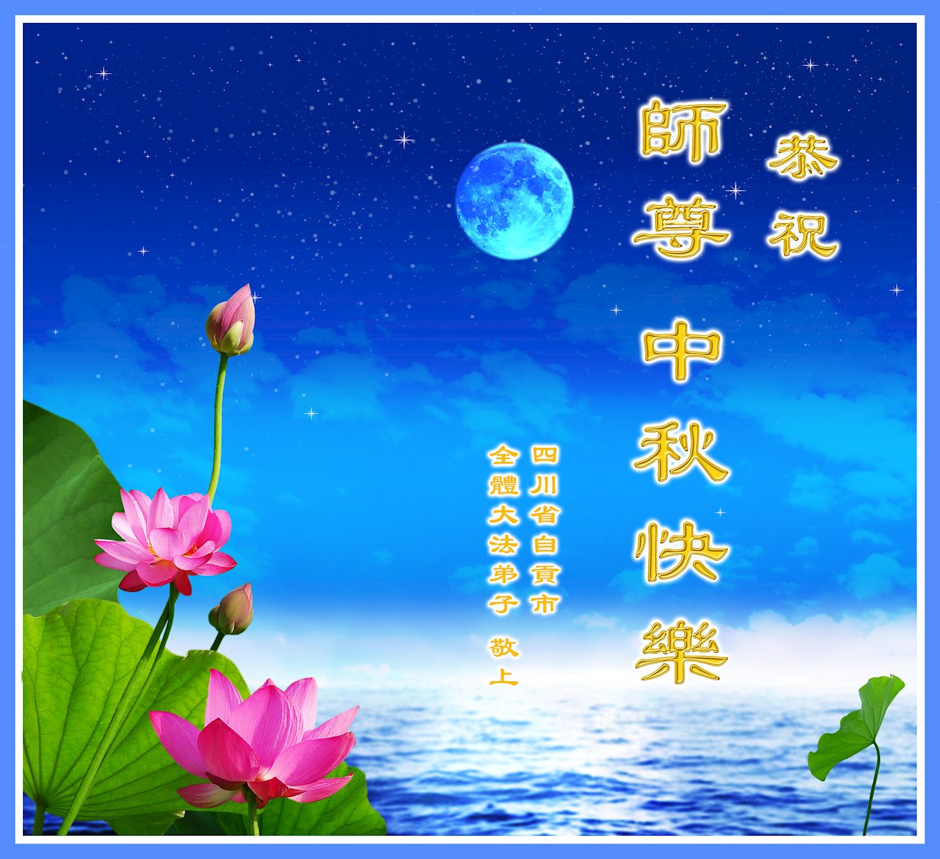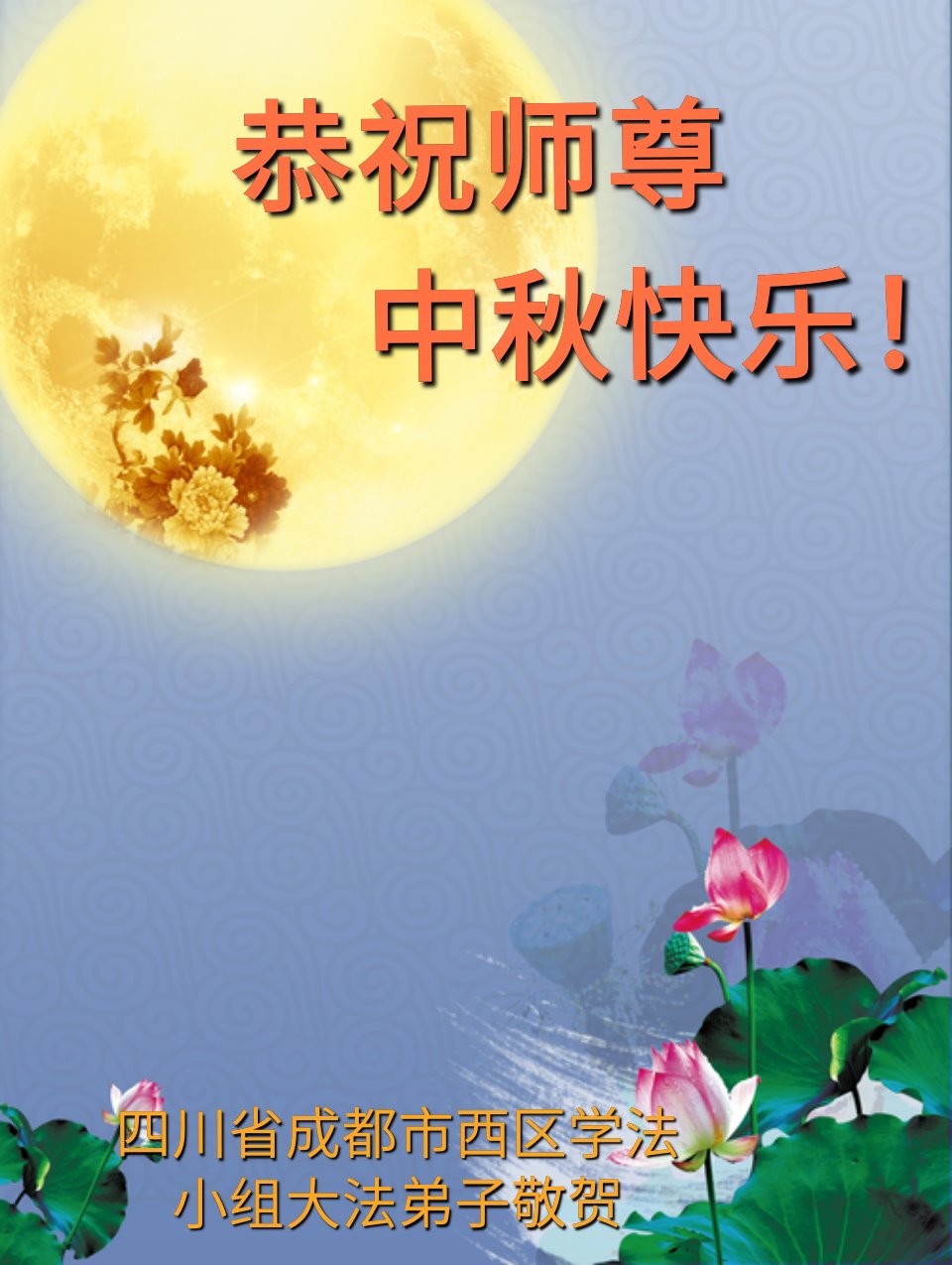 在中秋月圆之际,中国各省市地区的学法小组大法弟子、共同配合讲真相的大法弟子们恭祝慈悲伟大的师父中秋佳节好!