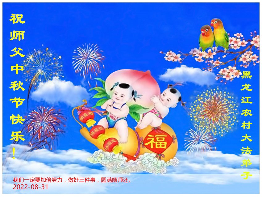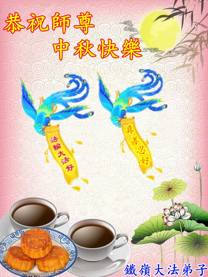 在正法所剩不多的日子里,我们一定多学法,向内找修好自己,多救人,多发正念,排除一切干扰,完成自己的历史使命。我们全体大法弟子恭祝师尊中秋节快乐!