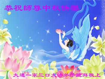 我们听到了您带领的大法弟子讲的真相,感动万分!我们看清了邪党骗人的伎俩,劝亲友们及身边人主动三退,我们得救了!遇上这高德大法,我们决定找大法弟子学大法、炼功!祝李大师中秋节快乐!