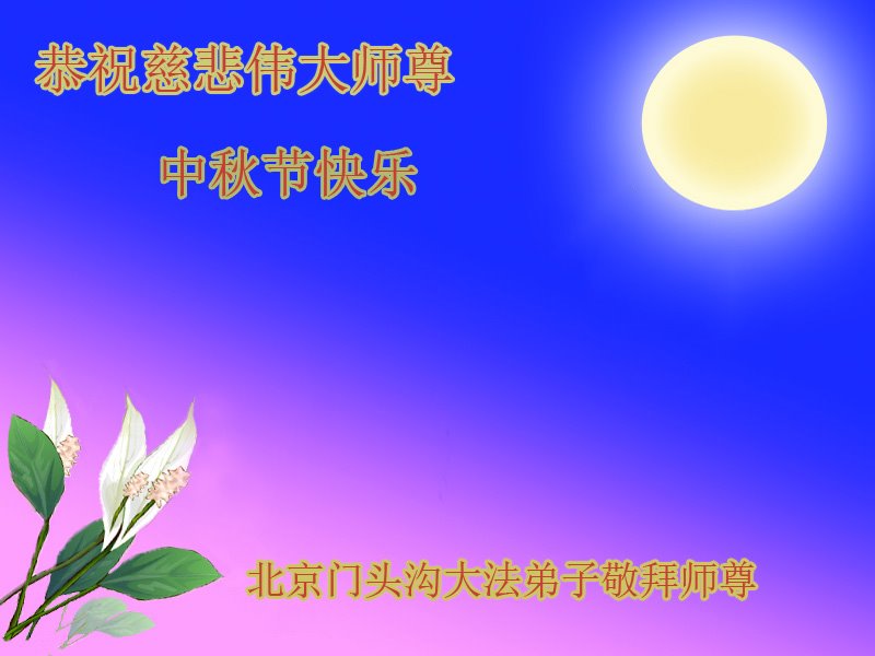 感谢您用“真、善、忍”法理指导我走过这么多年人生路,在此佳节祝您中秋快乐!
