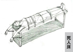 ![]() 中共酷刑示意图:死人床 |