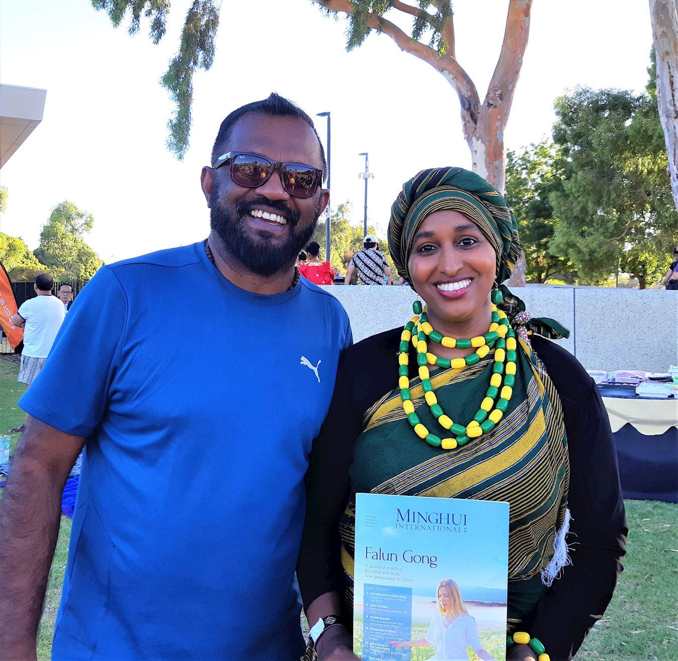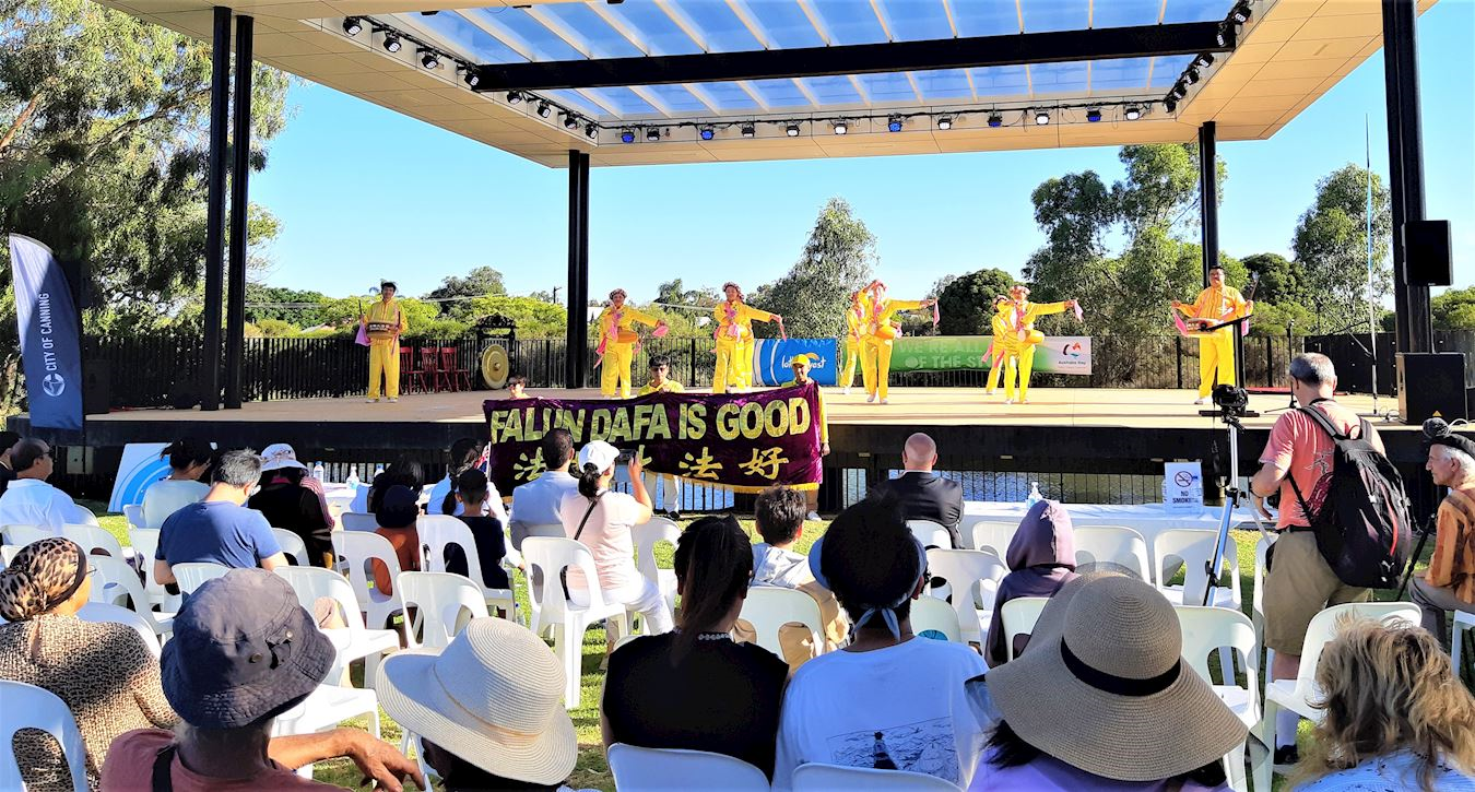 当天活动吸引了不同族裔的观众。法轮功学员受邀在舞台上表演中华传统腰鼓舞,也在活动现场的展位上演示了五套功法,并向人们介绍法轮功。有的民众询问当地的炼功点,希望学炼法轮功;有的民众说,在法轮功学员打坐时,我能感受到一种慈悲的力量,很欣赏法轮功学员用慈悲的心态给予他人支持;很多民众还赞赏法轮功学员的腰鼓表演温馨平和又鼓舞人心。