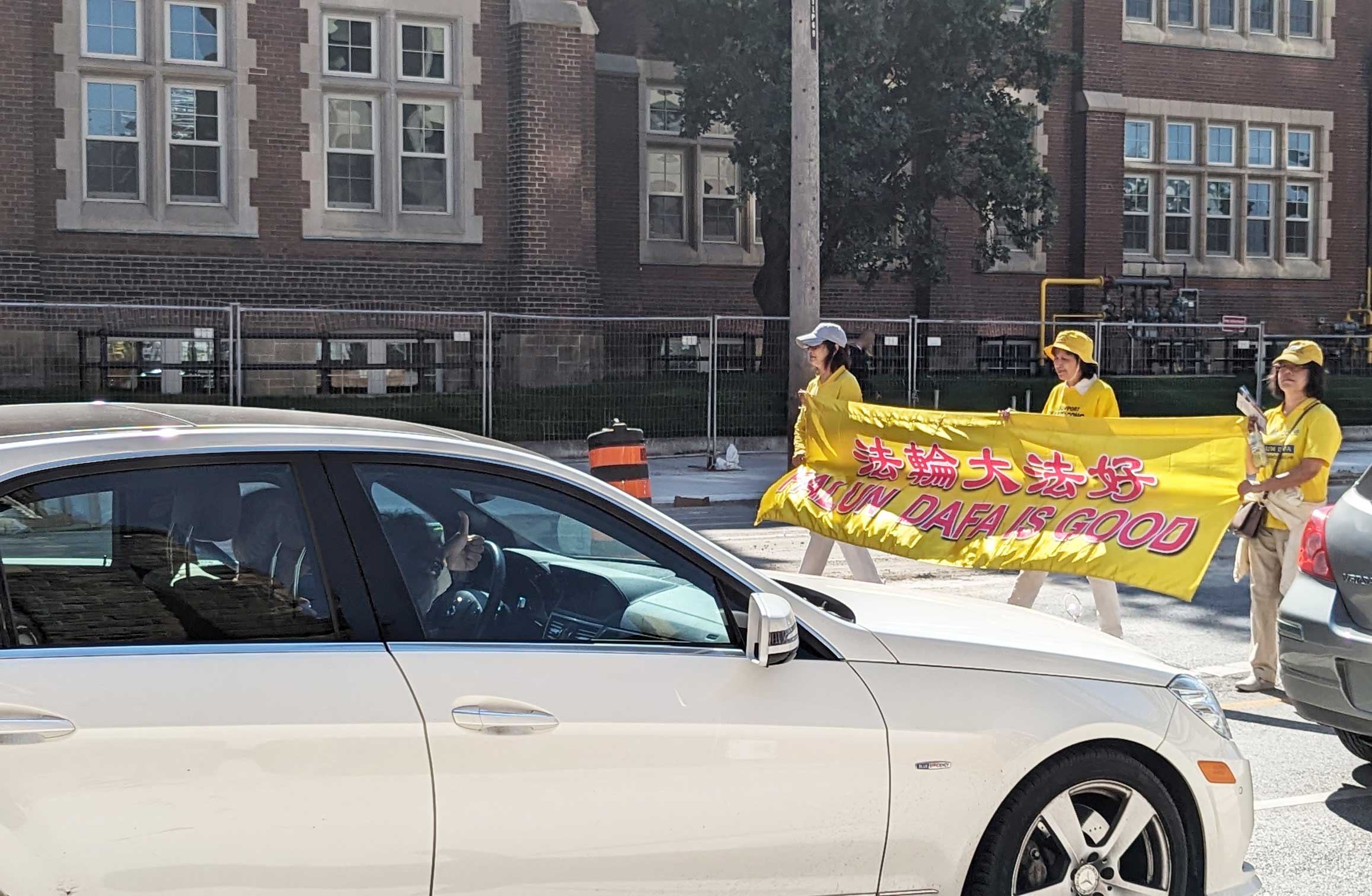 ![]() 图15:在车里观看的司机向游行队伍竖起了大拇指 |