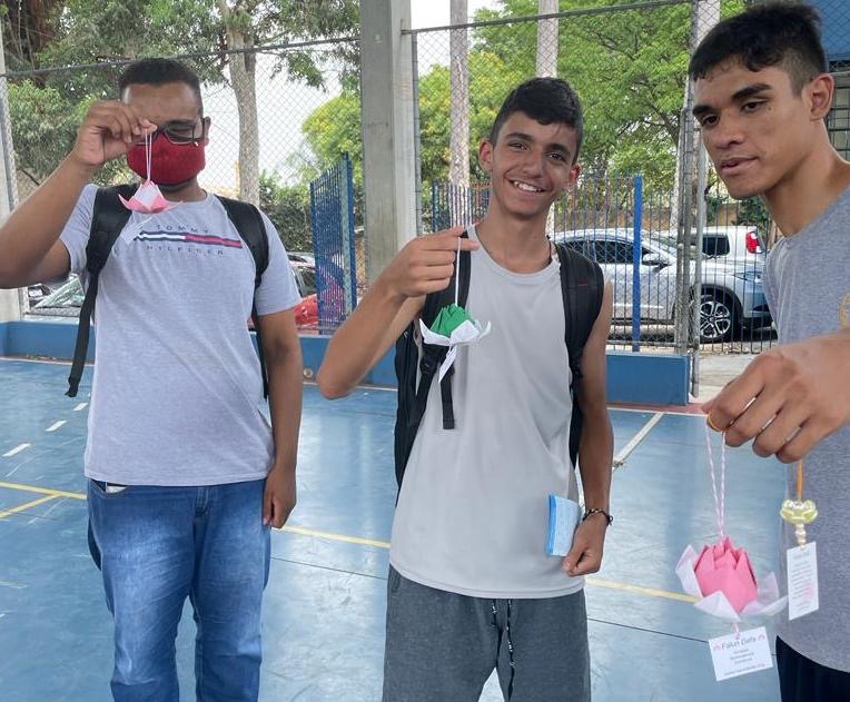 ![]() 图5:学炼法轮功后,学生韦斯利、伊戈尔和多纳万(从左到右)都得到了一朵象征纯洁的纸折莲花。 |