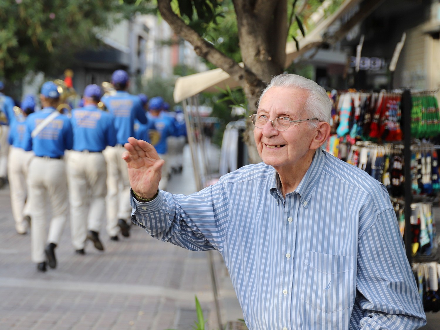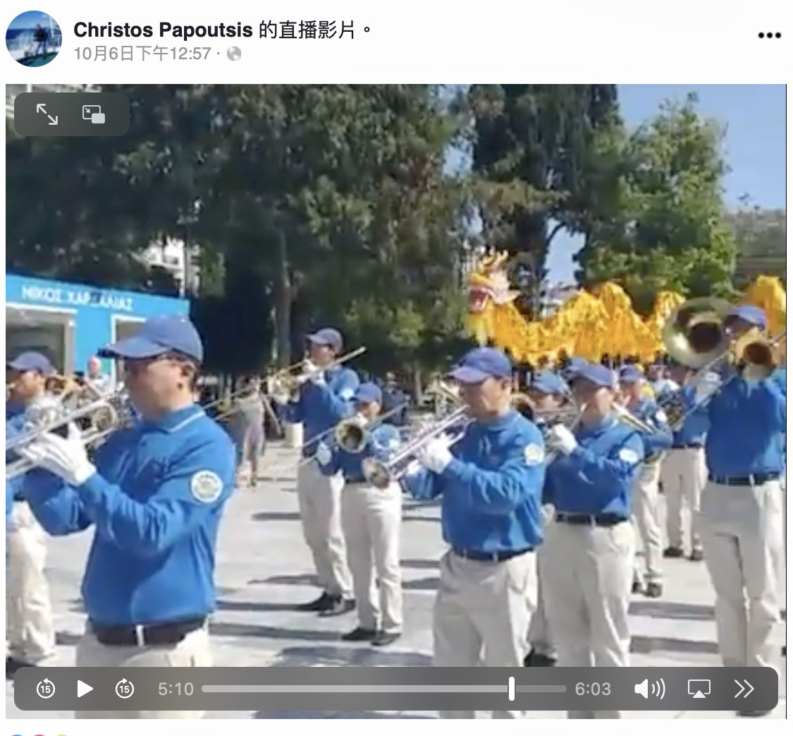 希腊人克里斯托·帕普西斯(Christos Papoutsis)在宪法广场上看到了法轮功的游行。当了解到法轮功学员在中国遭受迫害时,他开启了脸书上的六分钟直播,希望更多人能看到游行,帮助法轮功学员传播真相。