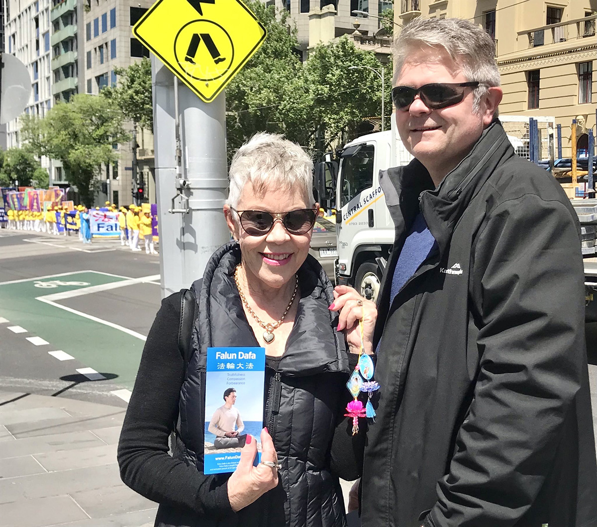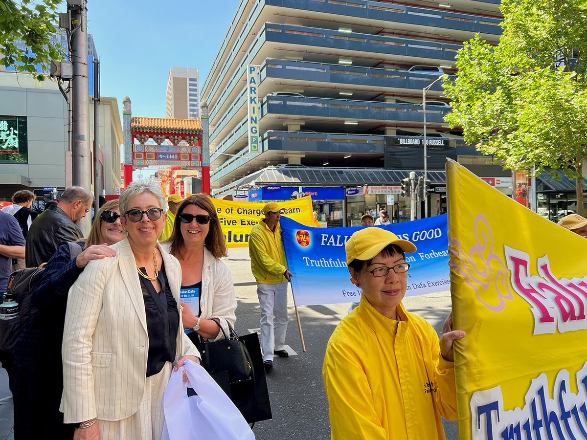 在墨尔本街头看到这么多人进行的美好平和的游行,她们很好奇他们是来自哪里,当了解来自全澳各地的法轮功学员在本周末举行系列活动,法轮功是一种遵循真、善、忍原则的修炼功法后,达里尔说:“这非常好,我们每个人都需要。”