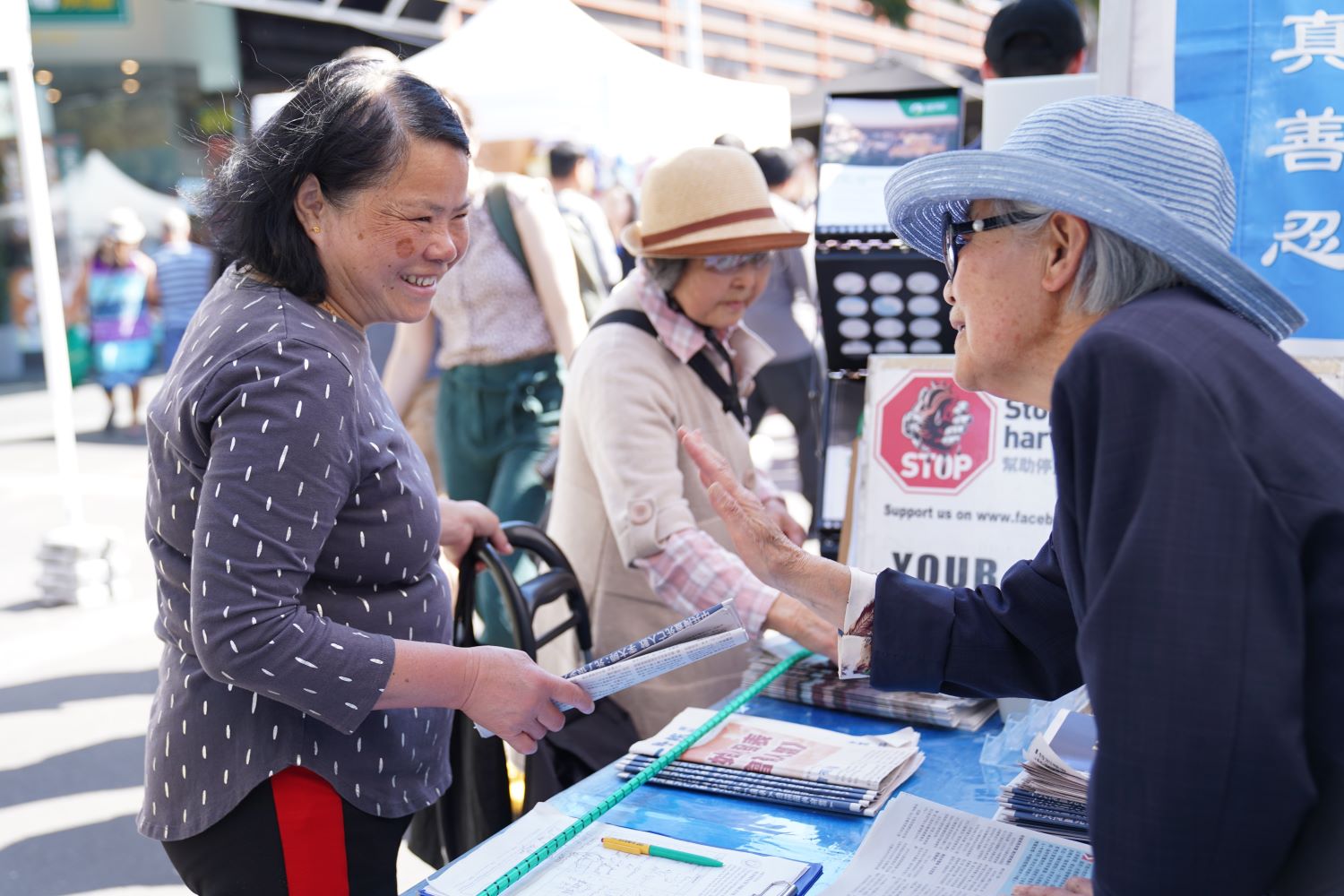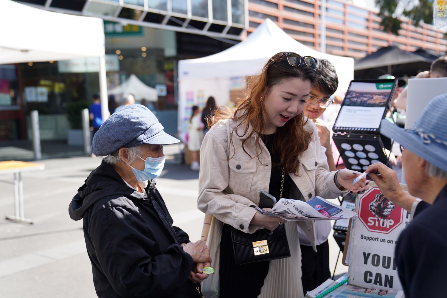 园游会由墨尔本台湾商会主办,美食和传统歌舞表演吸引民众举家前来参加。一片喧闹中,法轮大法的展位与众不同,学员们静静地展示法轮大法的五套功法,祥和而优美。也有学员为过往行人发放真相资料,同时揭露中共迫害法轮功的真相。