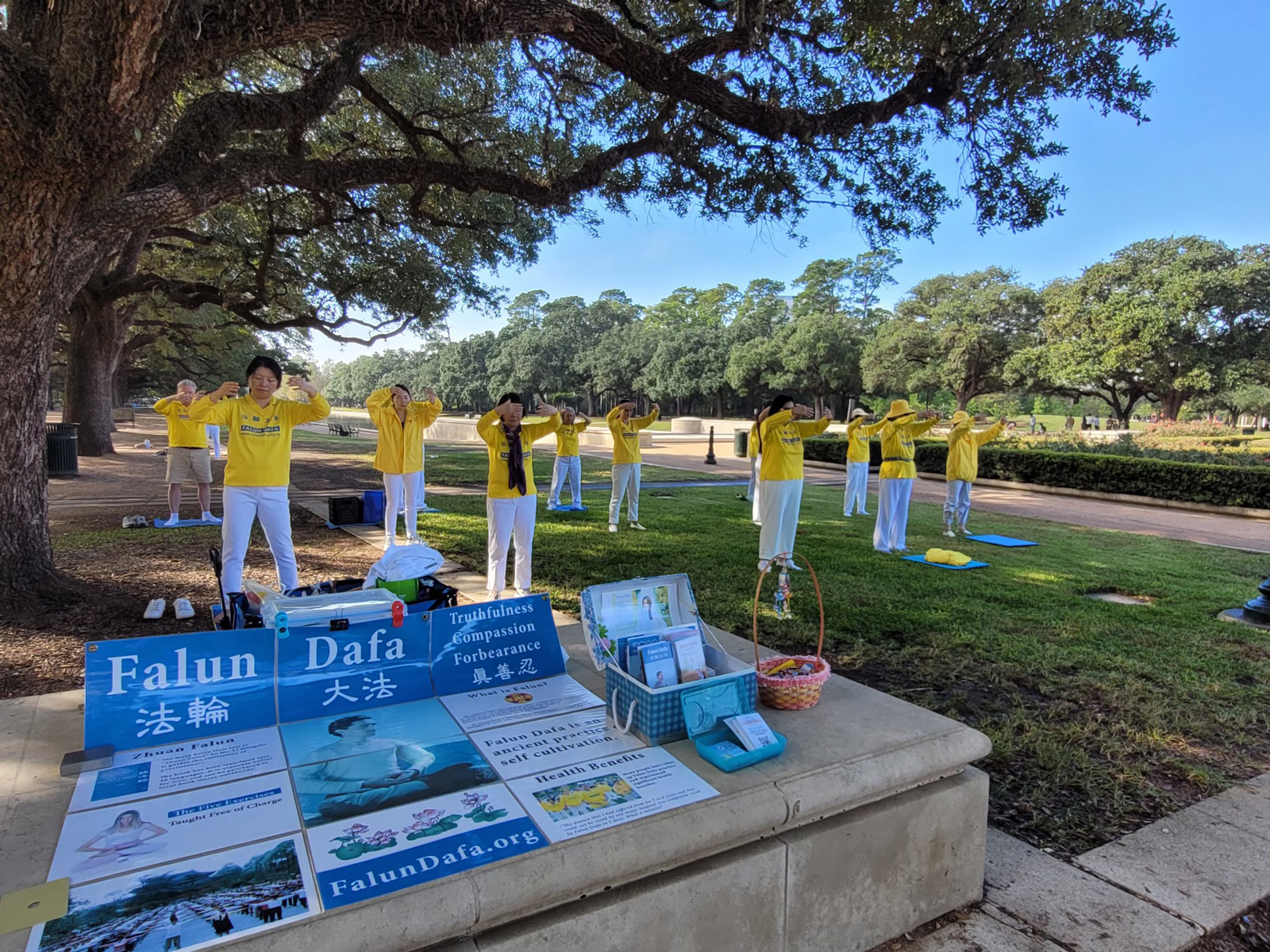 ![]() 图2:二零二三年十一月五日,休斯顿地区的部分法轮功学员在赫曼公园集体炼功。 |