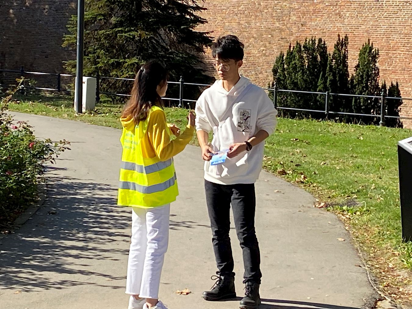 游客中有一名来自中国东部的年轻人,他看到学员们的炼功场景,感到即震惊又好奇,没有想到塞尔维亚也有法轮功。他问学员:“你为什么在这里炼法轮功?法轮功在中国不是被禁止的吗?”学员说,中国的电视上关于法轮功的新闻报道都是假的,除中国外,法轮功在世界其他国家都可以自由学炼,而且全部是义务教功。