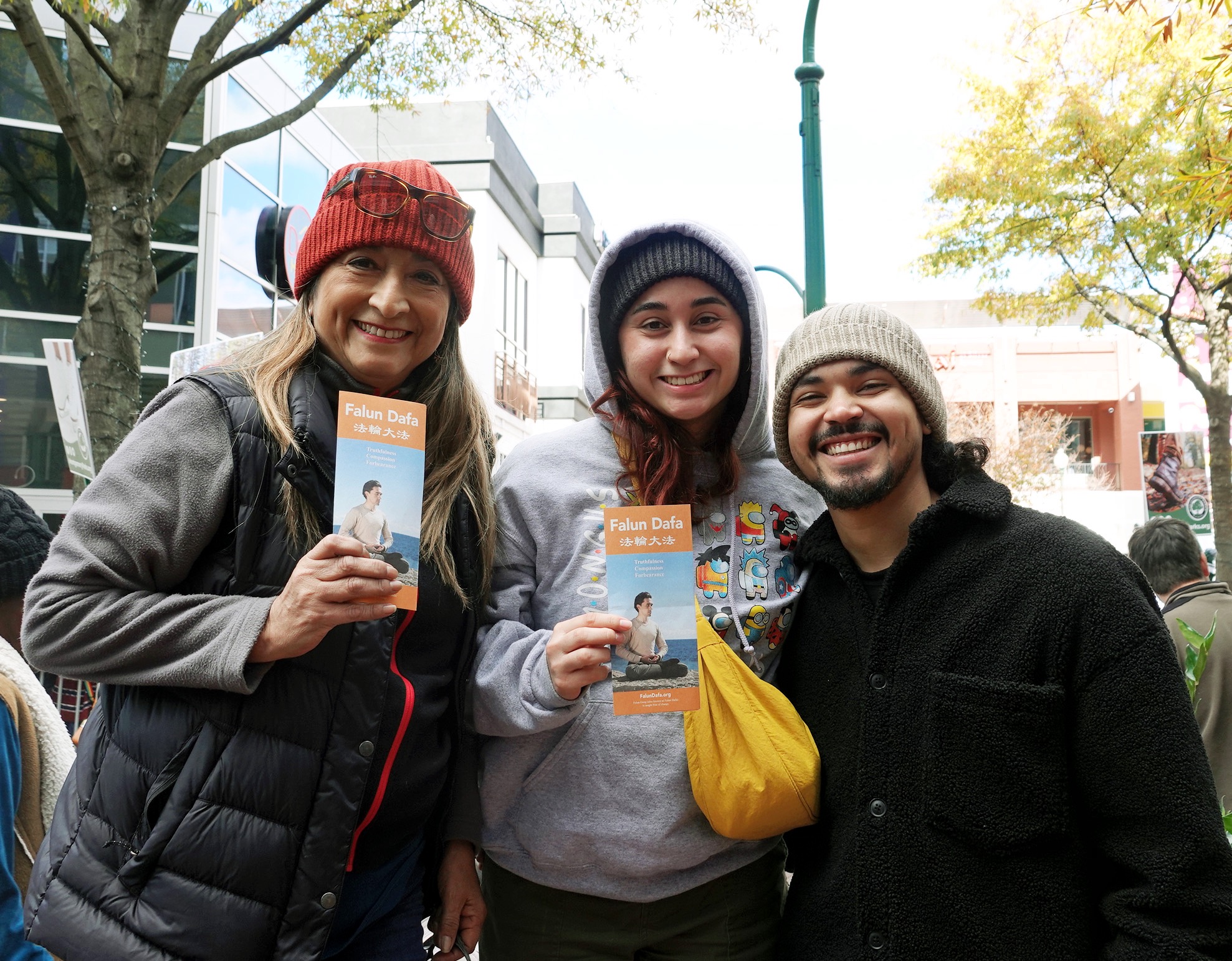 艾米丽说:“他们给我留下了深刻的印象,虽然周围环境这么嘈杂,他们(花车上演示功法的法轮功学员)仍然能够保持专注。我在传单上读到了真、善、忍,这正是人们现在所需要的。”