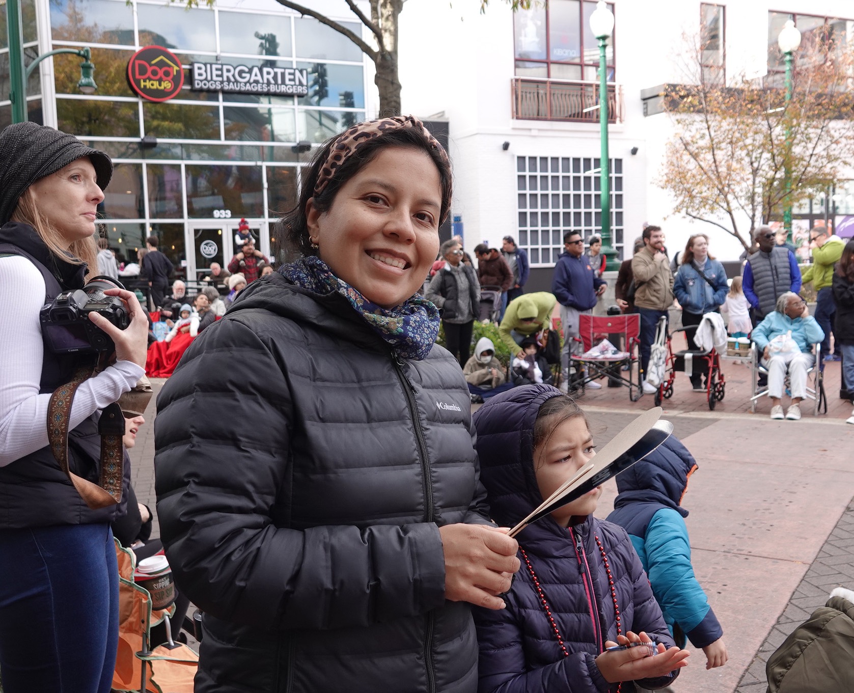 ![]() 图6:安娜贝拉(Anabela,左一)和艾米丽(Emily,中)及另一位家人结伴前来观看银泉市感恩节游行。 |