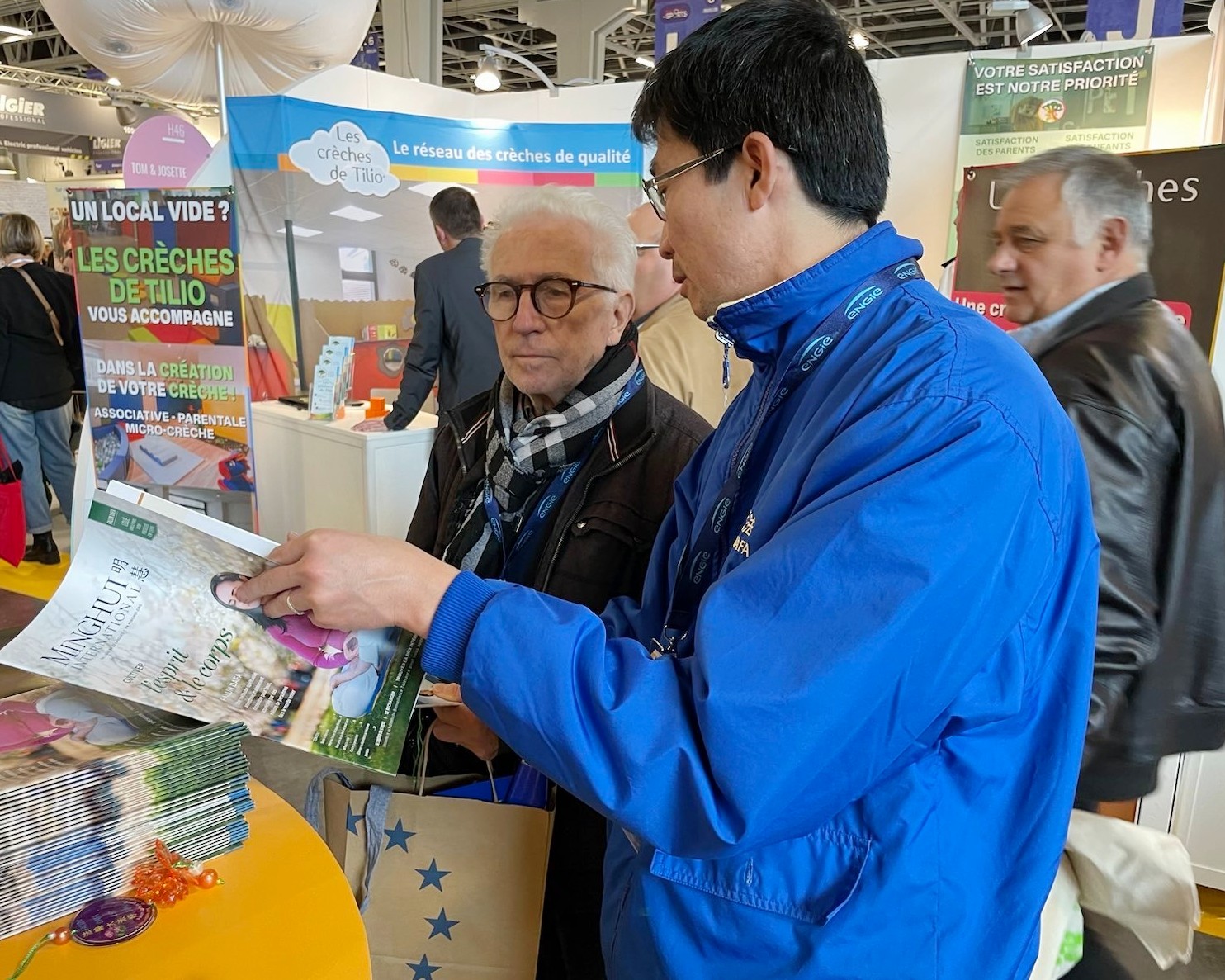 【明慧网二零二三年十一月二十六日】(明慧记者周文英巴黎报道)二零二三年十一月二十一日至二十三日,法轮功学员参加了在巴黎凡尔赛门展览馆举办的法国市长沙龙。在为期三天的展览会上,法轮功展位播放法轮功教功录像,向到访人员介绍法轮功及真相。