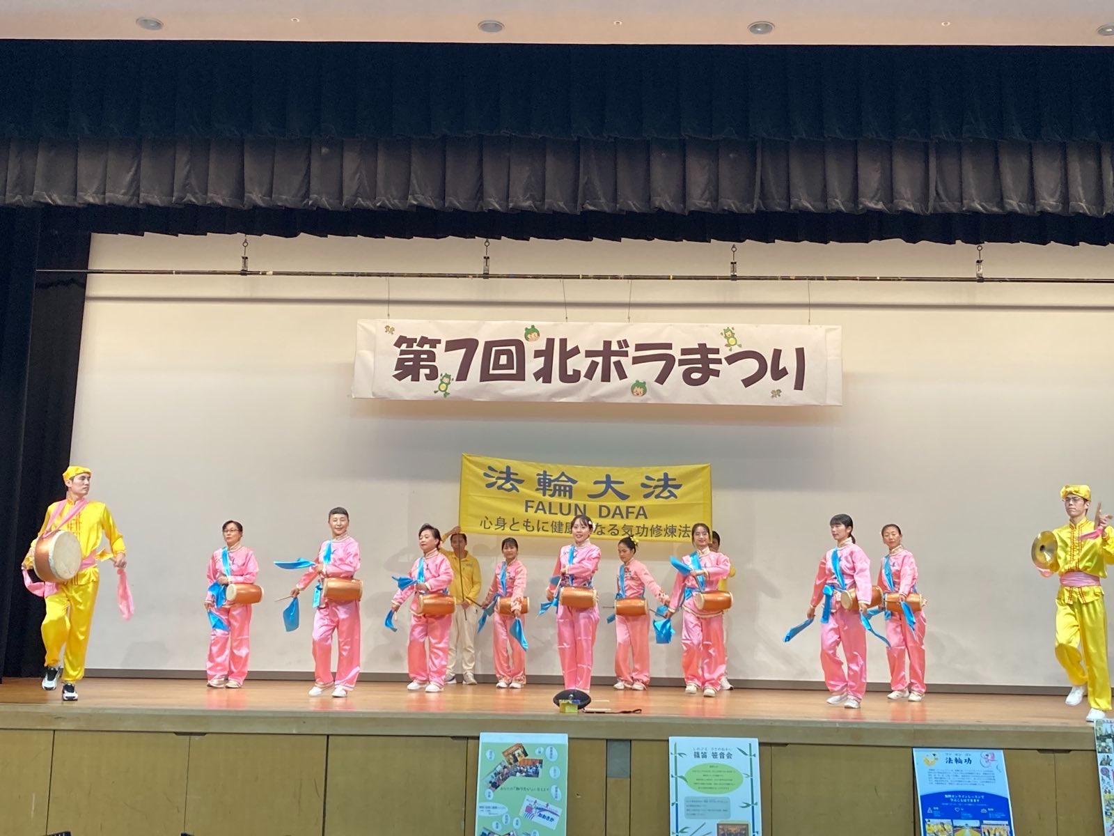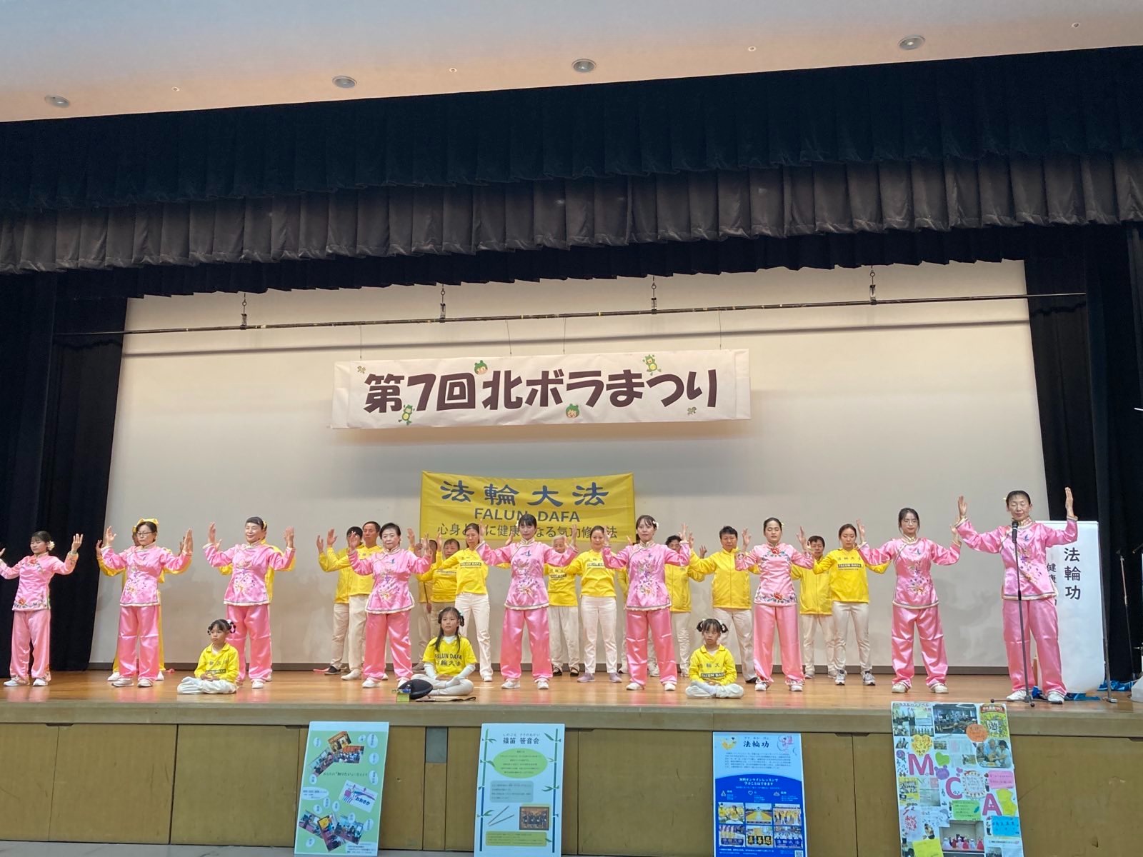 大阪市北区是大阪市的政治、经济、文化交流中心。每年参加北区义工庆典活动的都是该社区热心公益善事的各类民间团体。如教学手语的,对处于不知如何跟孩子沟通的父母提供免费咨询的,娱乐大众的日本相声(落语),声情并茂的朗读会等,法轮功团体是其中之一。