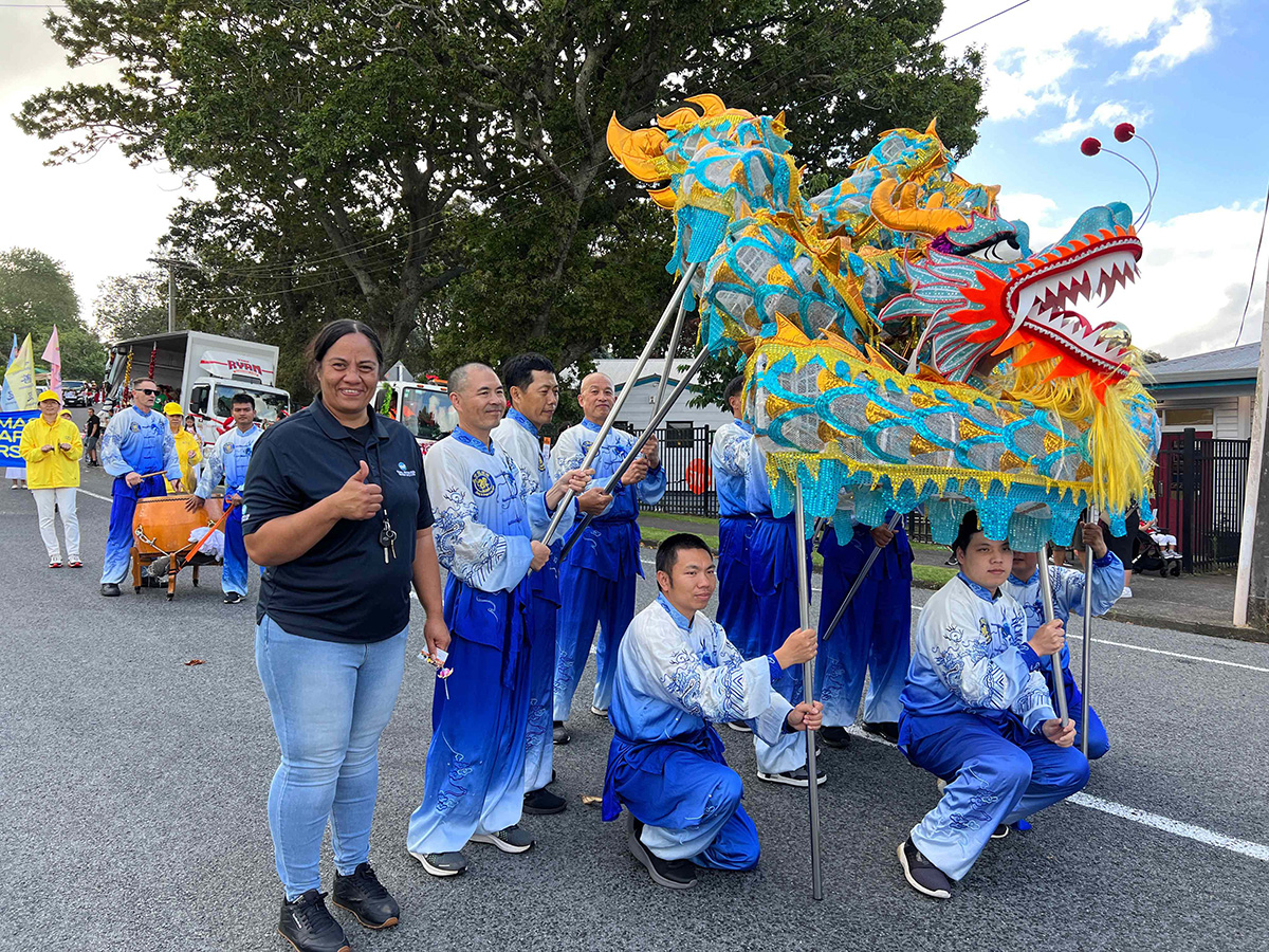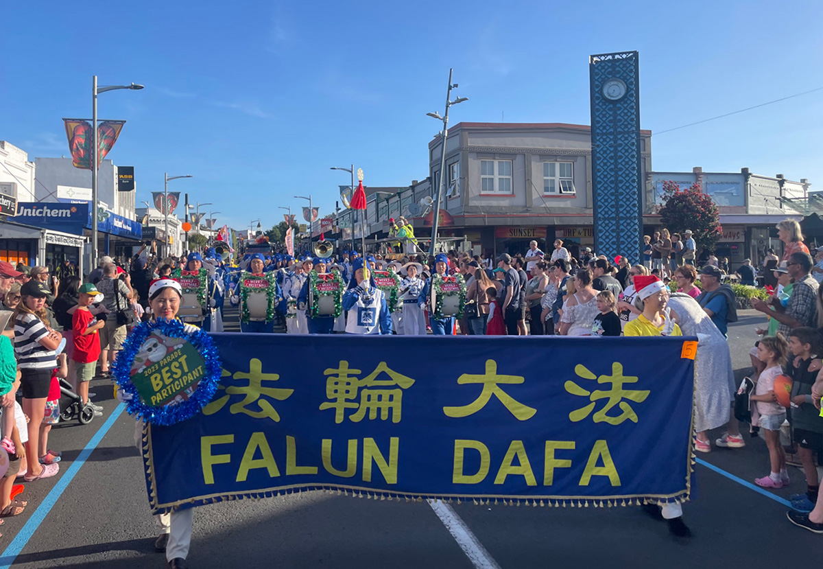【明慧网二零二三年十二月十三日】(明慧新西兰记者站报道)二零二三年十二月六日至十二月十日,新西兰法轮功学员参加了七场圣诞游行。他们的腰鼓队、舞龙队、天国乐团的表演让人们赞叹,他们秉持的真、善、忍理念更是获得了人们的发自内心的认同。在怀乌库(Waiuku)的圣诞游行中,他们荣获2023最佳参赛奖(Best Participant)。