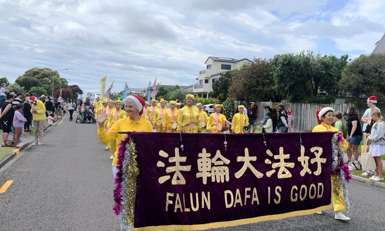 图7:十二月十日法轮功团体参加了帕帕莫阿(Papamoa)的圣诞游行。