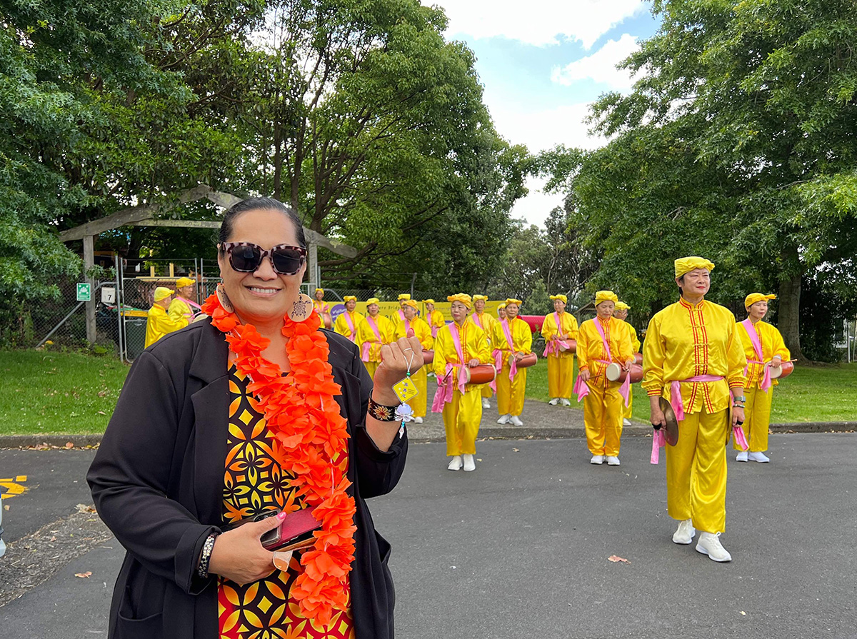 洛图·富丽(Lotu Fuli)是奥克兰曼努考(Manukau)区的议员(councillor)。她在圣诞游行中看到由法轮功学员组成的腰鼓队,赞赏到:“他们的表演总是那么棒,那么有活力,特别是我还看到他们中有一些年长的成员,能量满满,看上去十分健康,这非常好!”