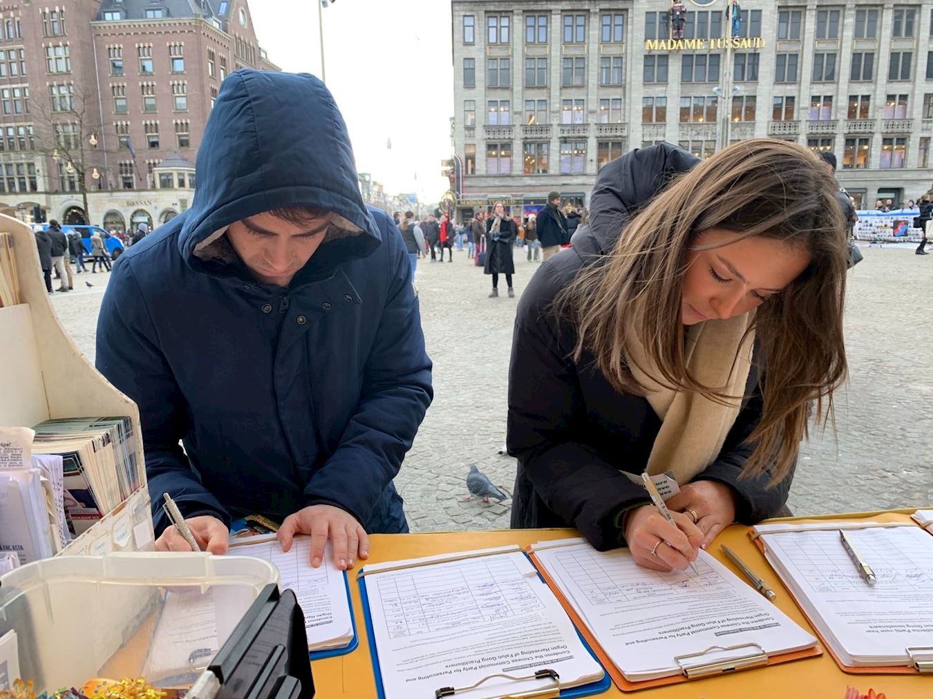 许多路人驻足聆听,并在制止中共迫害的请愿书上签名声援世界各地的学员,同时要求荷兰政府谴责中共活摘法轮功学员器官的罪行。