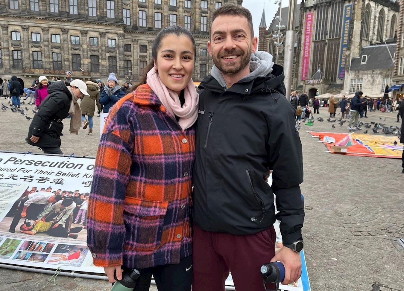 图6:IT主管奥斯曼·阿克曼和女友库布拉·耶莱克支持法轮功学员反迫害。