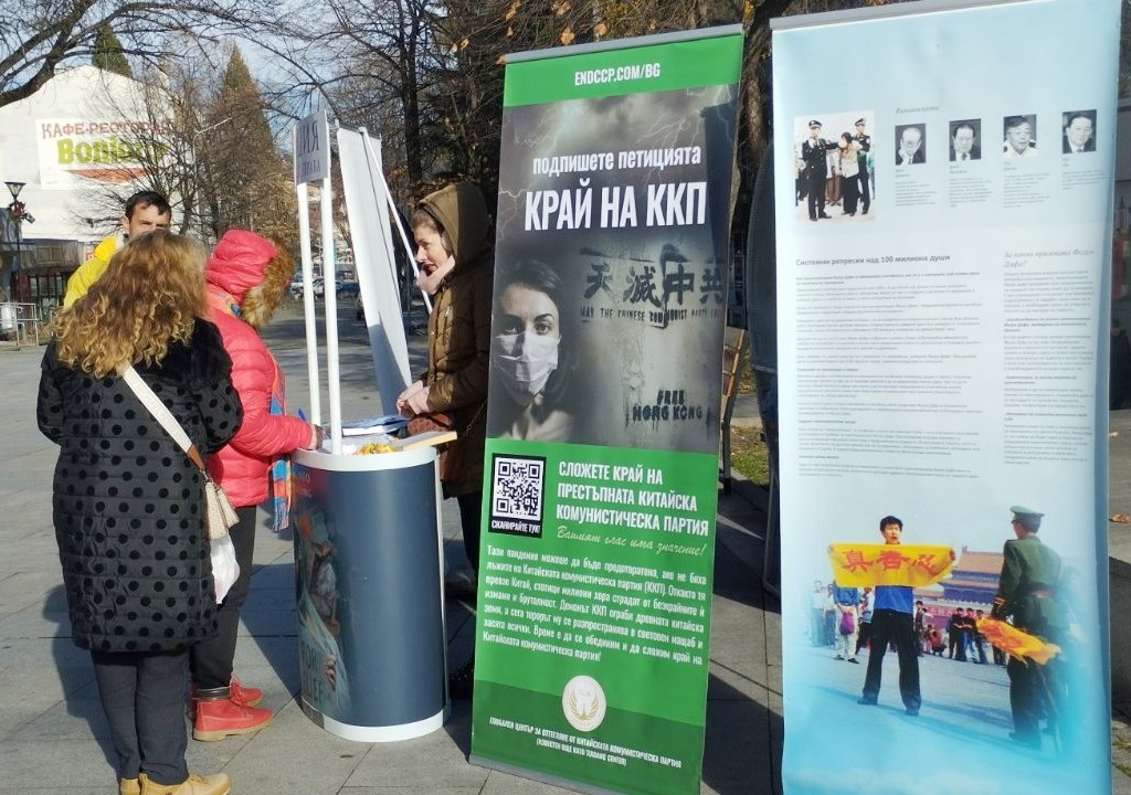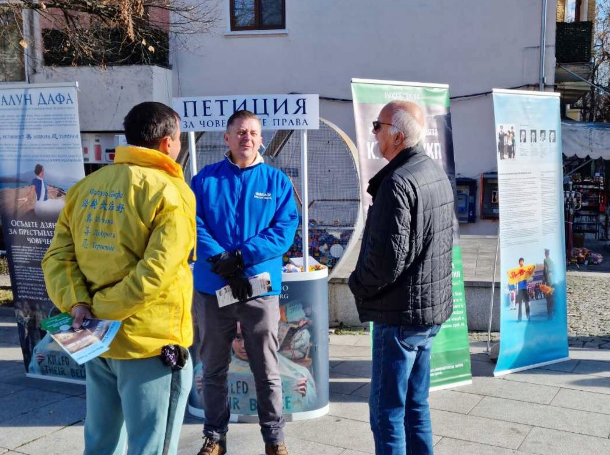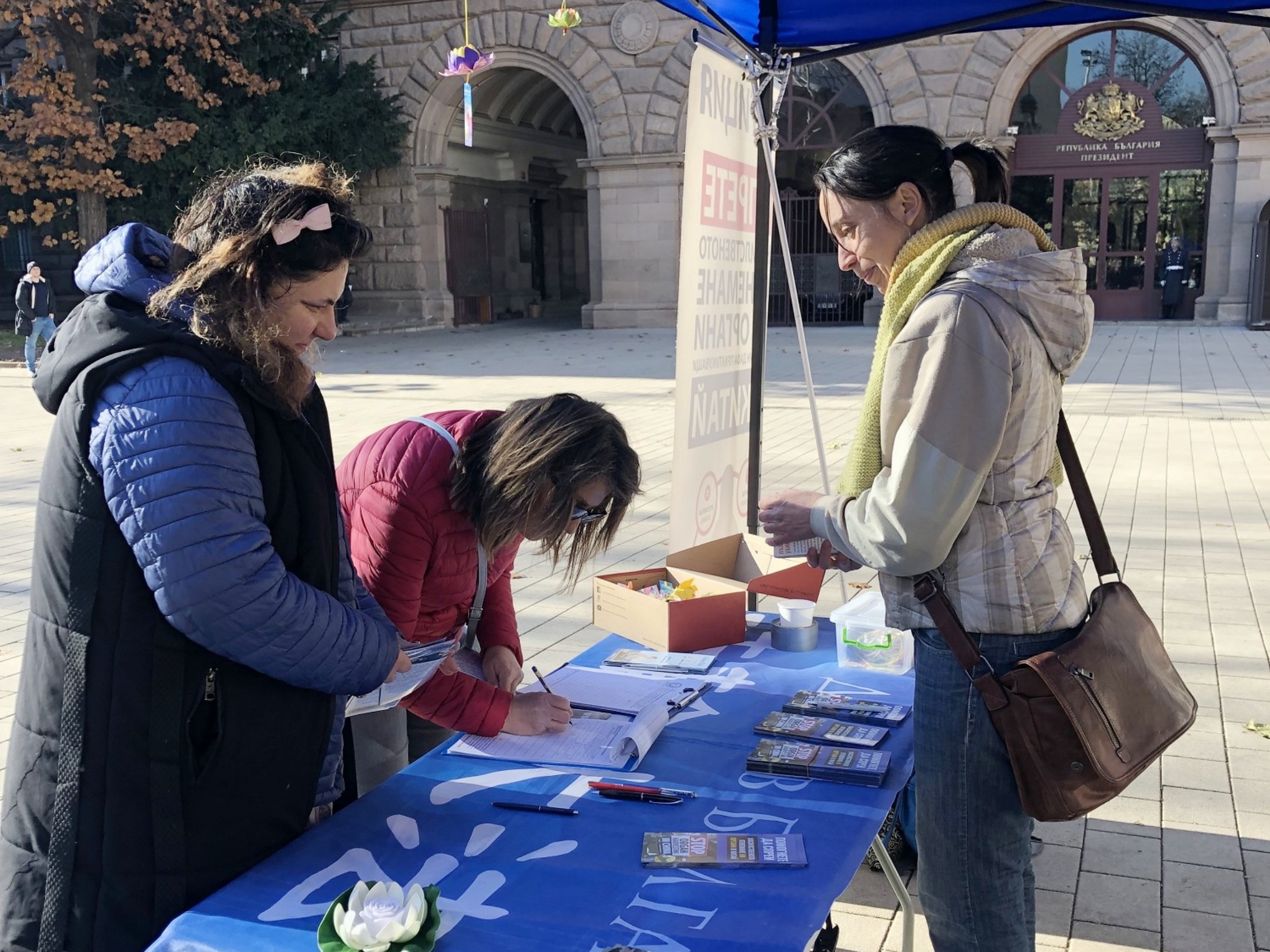 十二月九日星期六,法轮功学员再次来到他们平时讲真相的地点——普罗夫迪夫主要街道,举行和平请愿活动,为两份请愿书征签:一份谴责中共犯下的诸多侵犯人权暴行;另一份呼吁保加利亚政府全面阻止保加利亚人参与中共活摘法轮功学员器官的罪行。