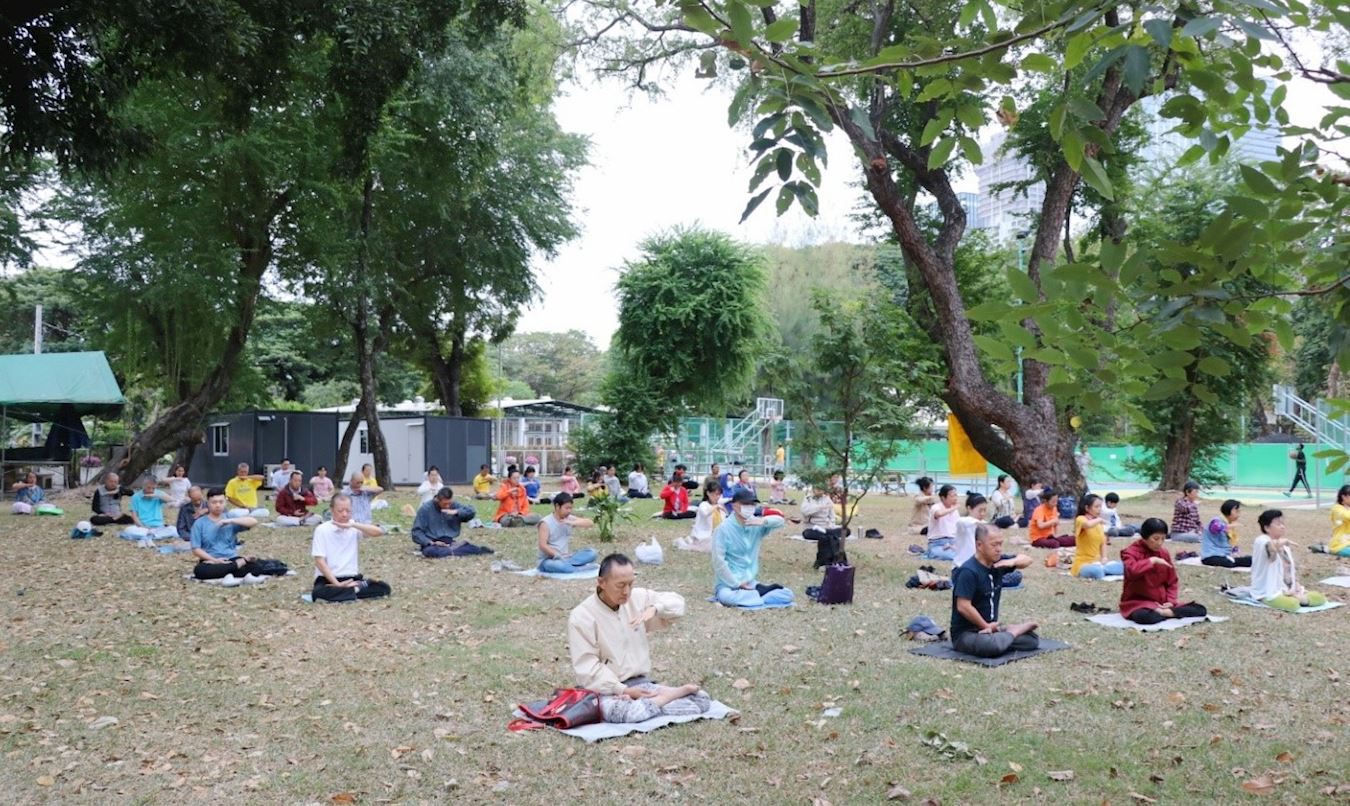 清晨,学员们齐聚是乐园(Lumphini Park)炼功点集体炼功。尽管近日寒潮,气温骤降,许多学员表示炼功场暖暖的。炼功时能量场很强,靠近炼功场,感到内心祥和、舒适。
