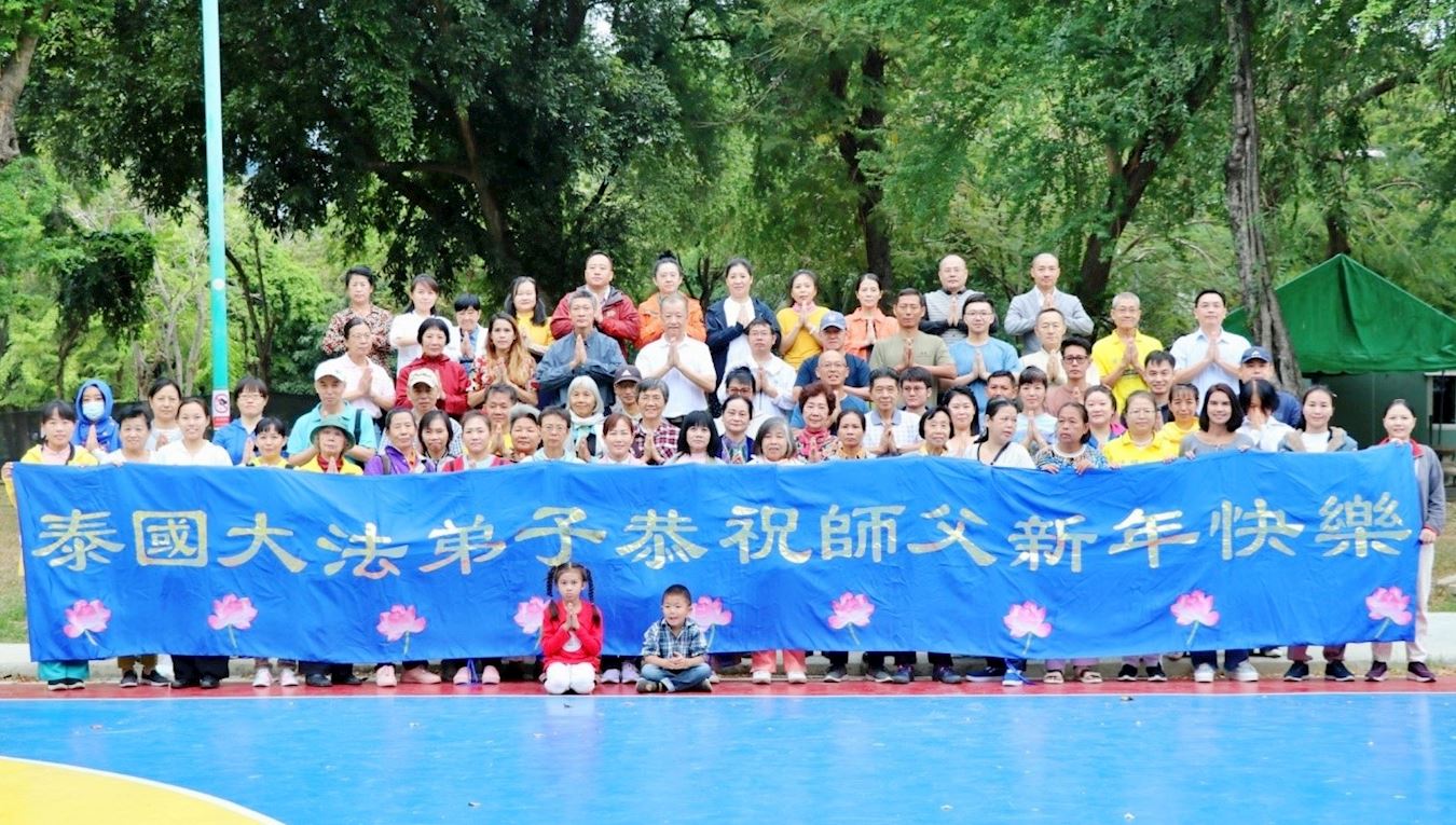 ![]() 图2:泰国法轮功学员向法轮大法创始人李洪志师父祝贺新年快乐。 |