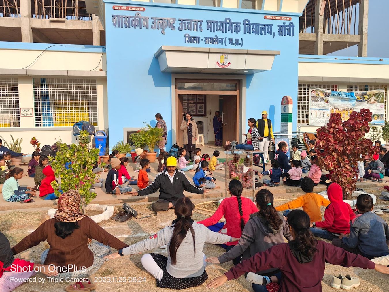 十一月二十五日,一组法轮功学员来到中央邦赖森市的一所公立学校,教幼儿园至五年级的约一百五十名学生炼功。