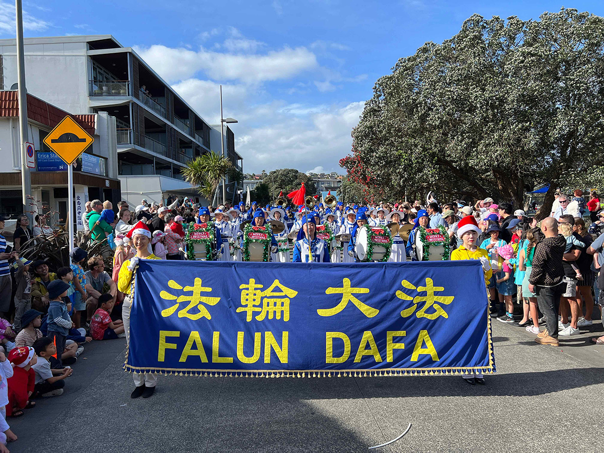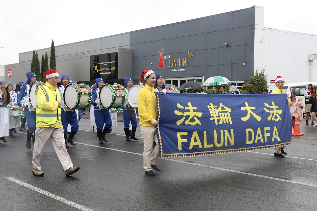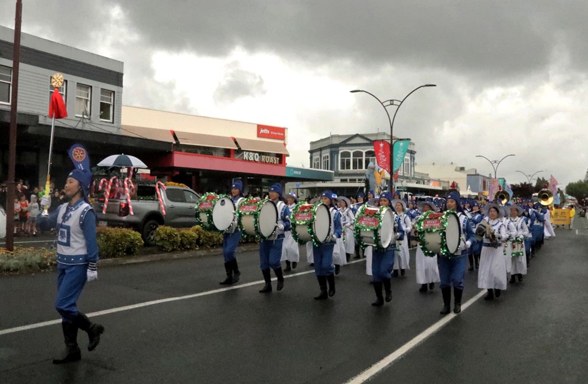 十二月一日,由法轮功学员组成的腰鼓队参加了奥克兰库梅乌(Kumeū)地区的圣诞游行。十二月二日,天国乐团参加了早上十一点的奥克兰奥内宏加(Onehunga)和下午五点的布朗斯湾(Browns Bay)的圣诞游行;舞龙队参加了玛塔玛塔(Matamata)的游行;腰鼓队参加了南岛阿什波顿(Ashburton)的游行。十二月三日,天国乐团参加了中午十二点的蒂阿瓦木图(Te Awamutu)和下午两点的汉密尔顿(Hamilton)市的圣诞游行;腰鼓队参加了南岛蒂马鲁(Timaru)的游行。