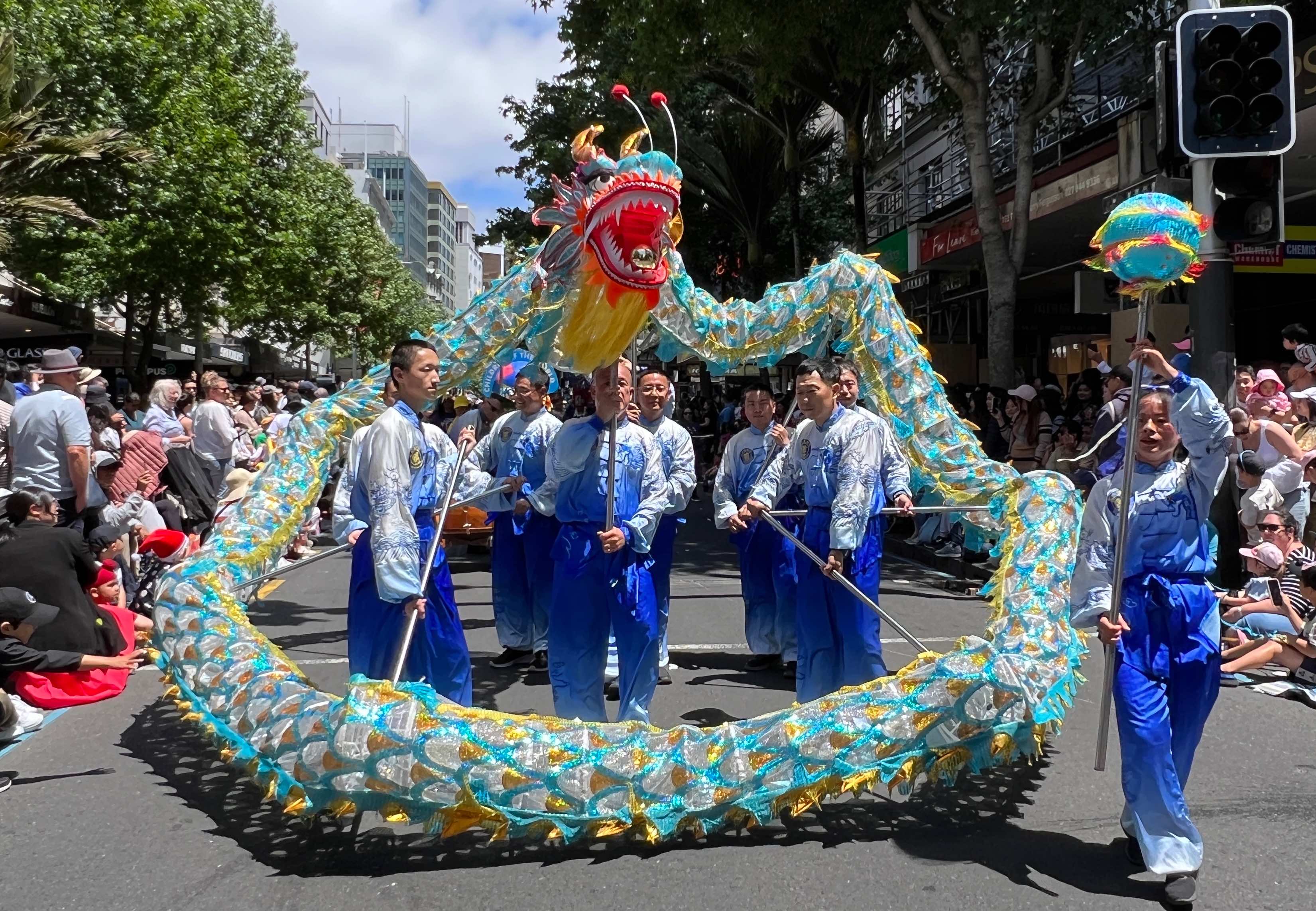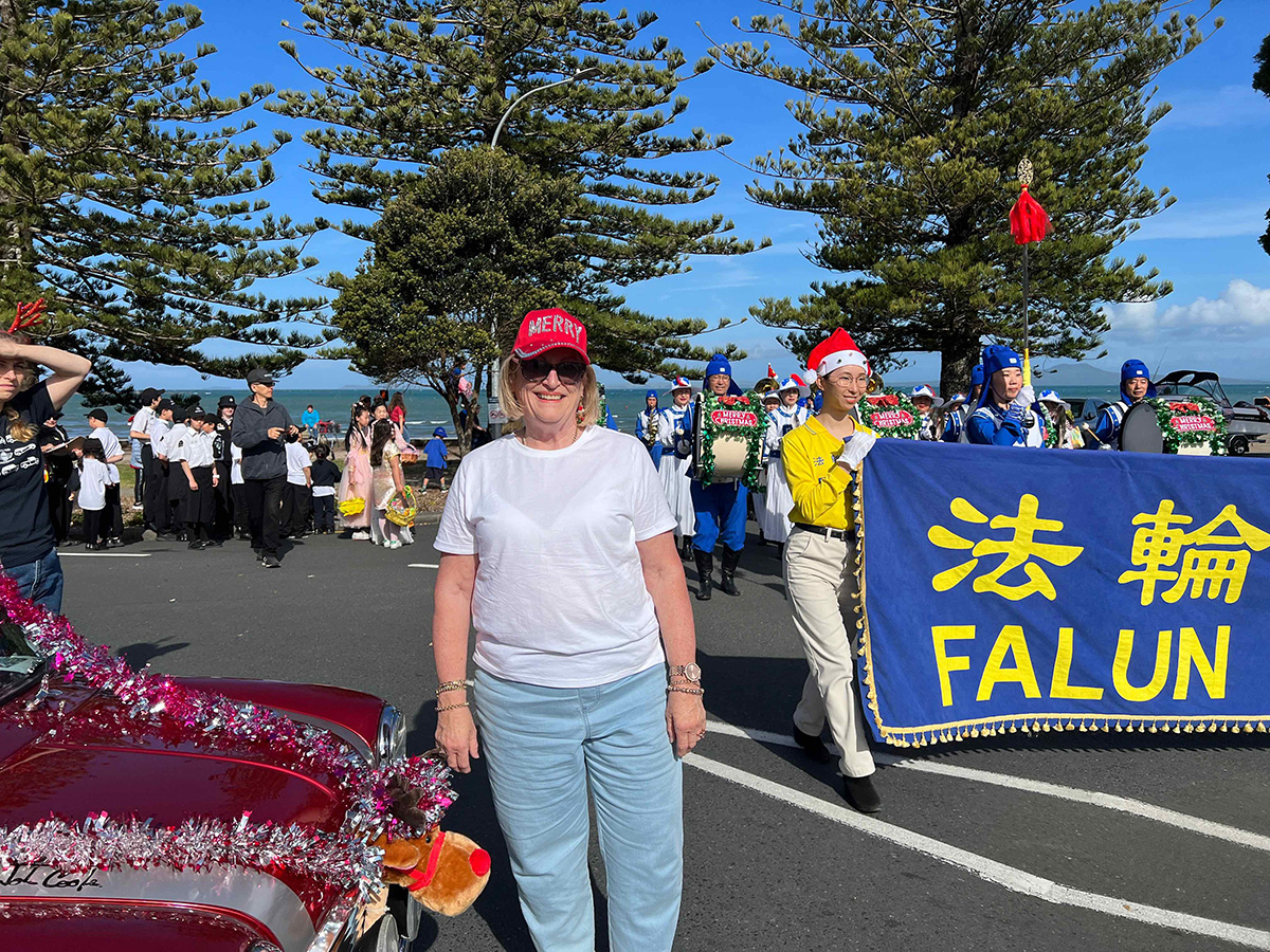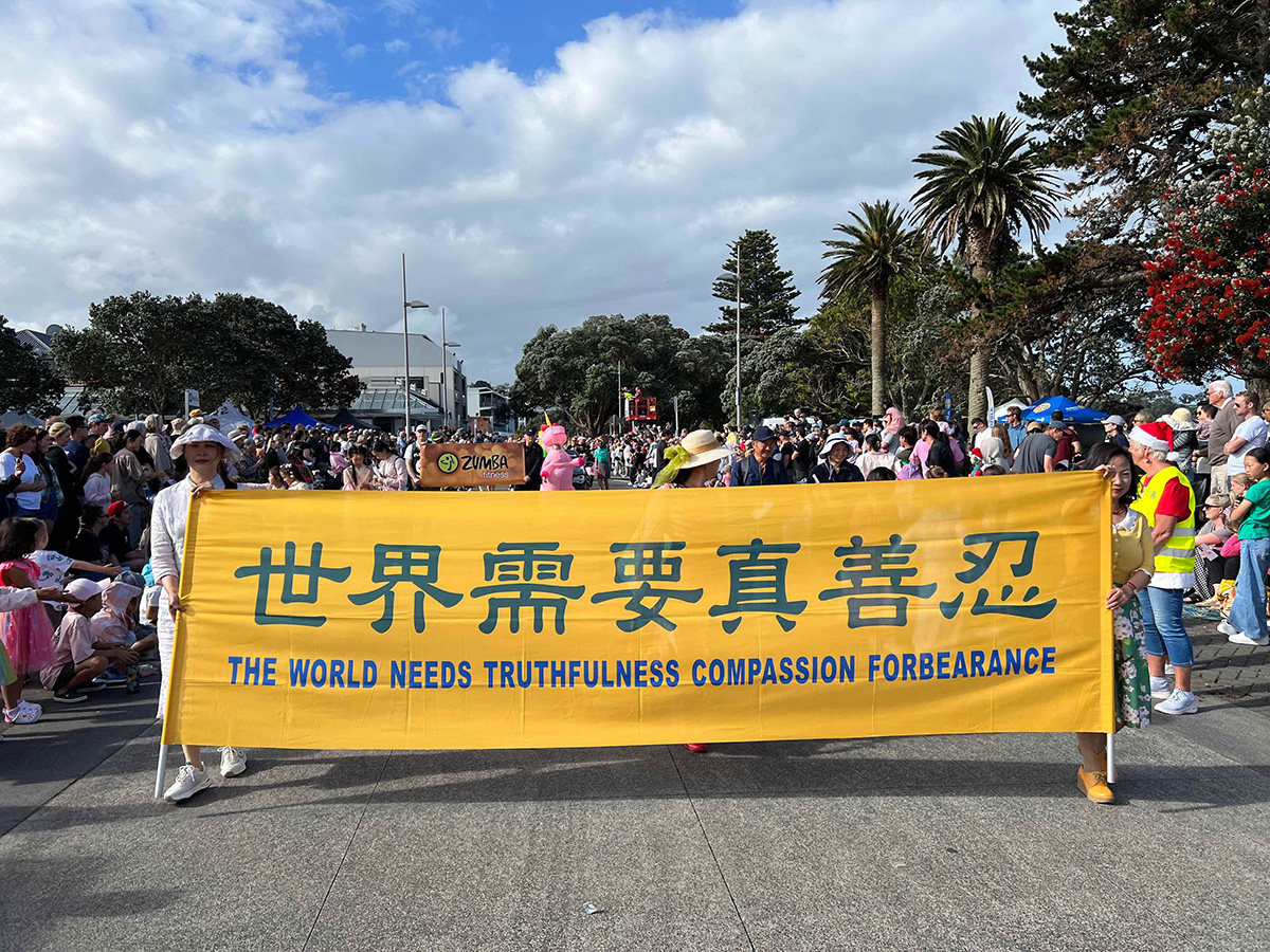 十二月一日,由法轮功学员组成的腰鼓队参加了奥克兰库梅乌(Kumeū)地区的圣诞游行。十二月二日,天国乐团参加了早上十一点的奥克兰奥内宏加(Onehunga)和下午五点的布朗斯湾(Browns Bay)的圣诞游行;舞龙队参加了玛塔玛塔(Matamata)的游行;腰鼓队参加了南岛阿什波顿(Ashburton)的游行。十二月三日,天国乐团参加了中午十二点的蒂阿瓦木图(Te Awamutu)和下午两点的汉密尔顿(Hamilton)市的圣诞游行;腰鼓队参加了南岛蒂马鲁(Timaru)的游行。