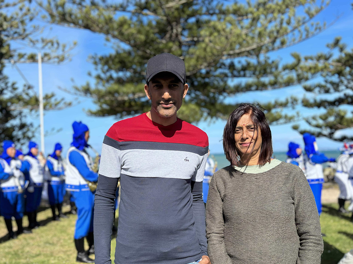 一对来自南非的兰尼(Rani)和她儿子在天国乐团演奏时驻足良久,她儿子听说乐团由修炼法轮大法的学员组成后,对功法非常感兴趣。