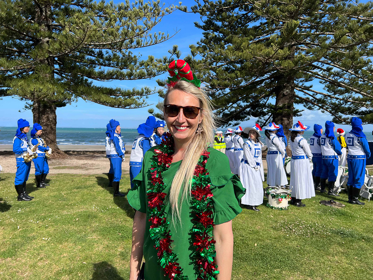 ![]() 图2:十二月二日上午,法轮功学员参加奥克兰奥内宏加(Onehunga)圣诞游行。 |