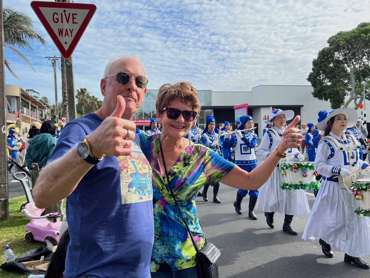 内维尔(Neville)是一家划船俱乐部的业主。他带领他的员工每年都参加布朗湾的圣诞游行。他正在现场给法轮功游行队伍录像,他说:“他们(法轮功学员)每年都来参加圣诞游行,我看着他们一年比一年壮大,太棒了!”