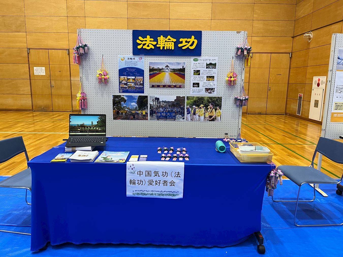'图1:二零二三年十一月二十五、二十六日,法轮功学员应邀参加日本埼玉市岩槻区举办的活动成果展示会。图为法轮功的展位。'