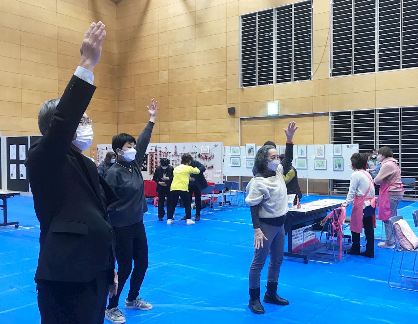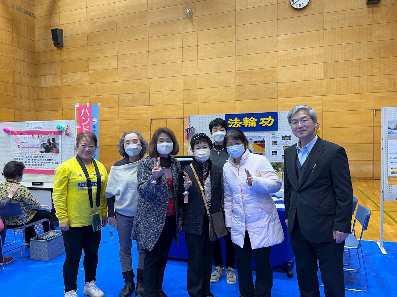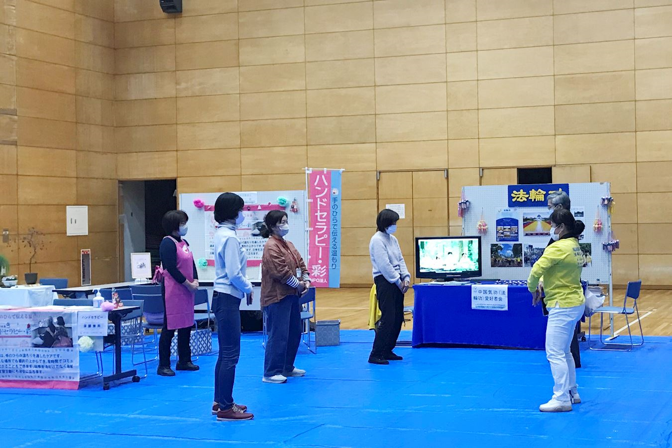 埼玉市岩槻区以日本人偶出名,所以,该展示会上大多是以绘画、盆栽、传统手工艺品等的展位,还有与健康有关的展位。法轮功学员也前来设立了展位。