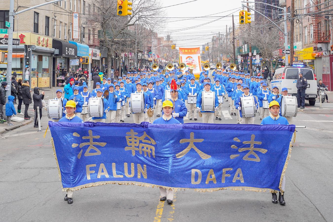 ![]() 图1~12:二零二三年二月二十六日(周日),大纽约地区的上千名法轮功学员,在纽约第三大华人社区---布碌崙(布鲁克林)八大道举行盛大游行。图为包括天国乐团的第一方阵 |