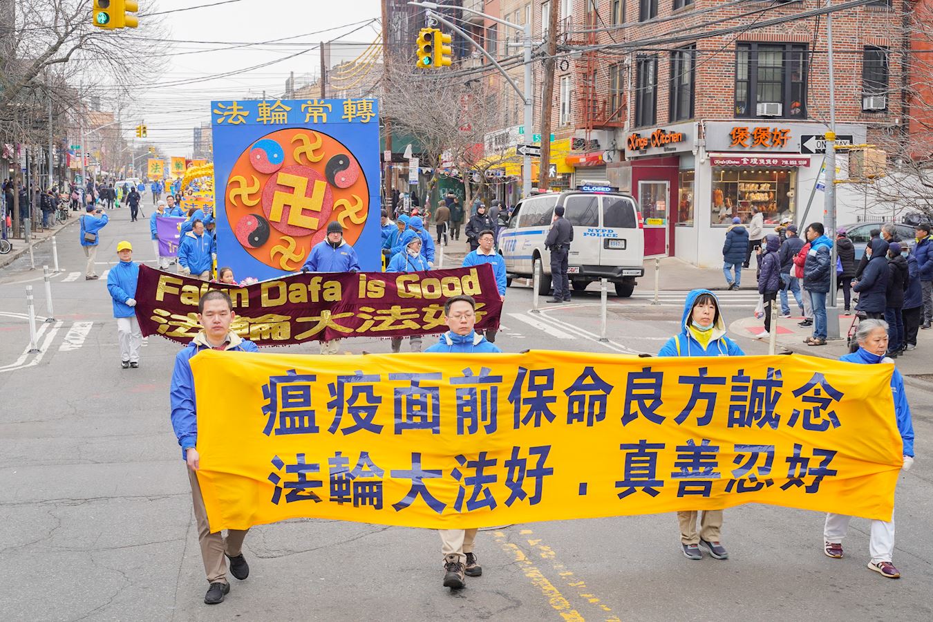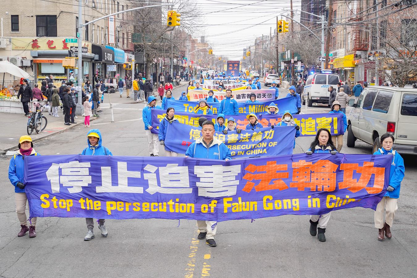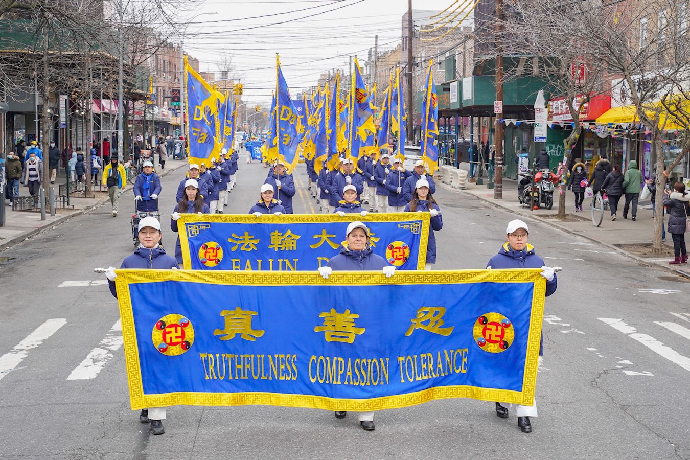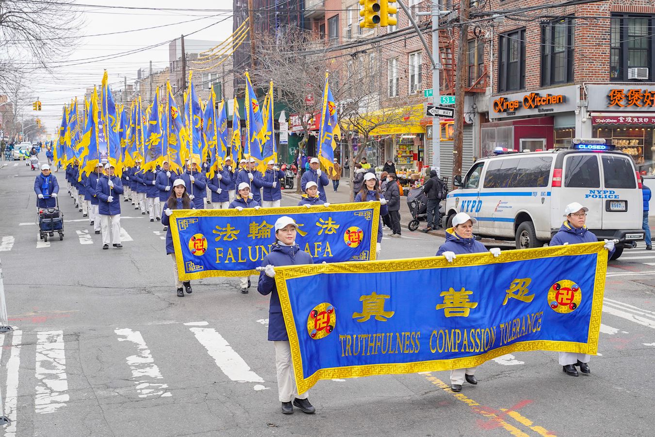 ![]() 图13~17:二零二三年二月二十六日(周日),大纽约地区的上千名法轮功学员,在纽约第三大华人社区---布碌崙(布鲁克林)八大道举行盛大游行。图为“停止迫害法轮功”方阵 |