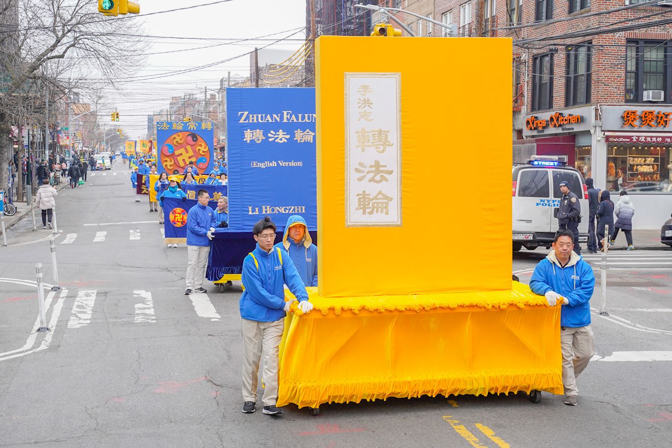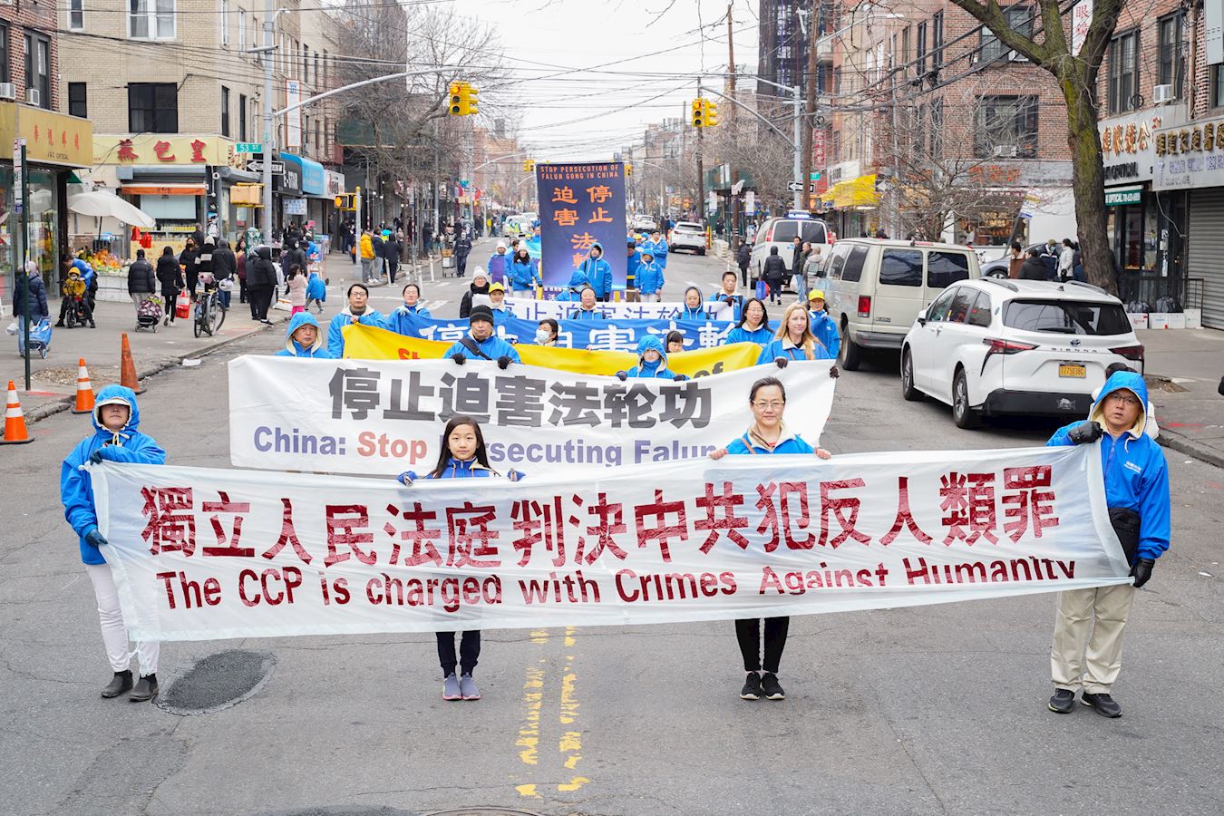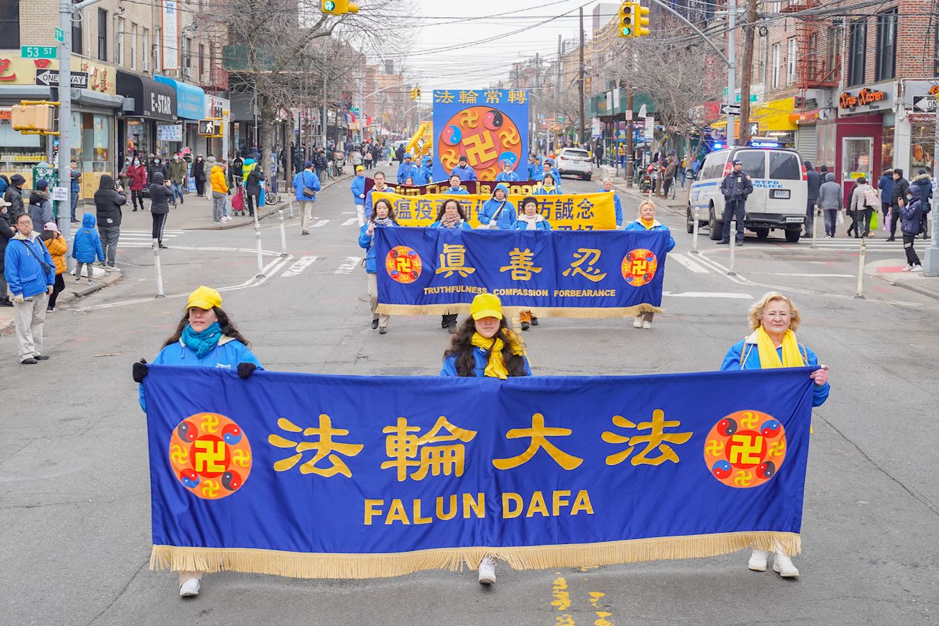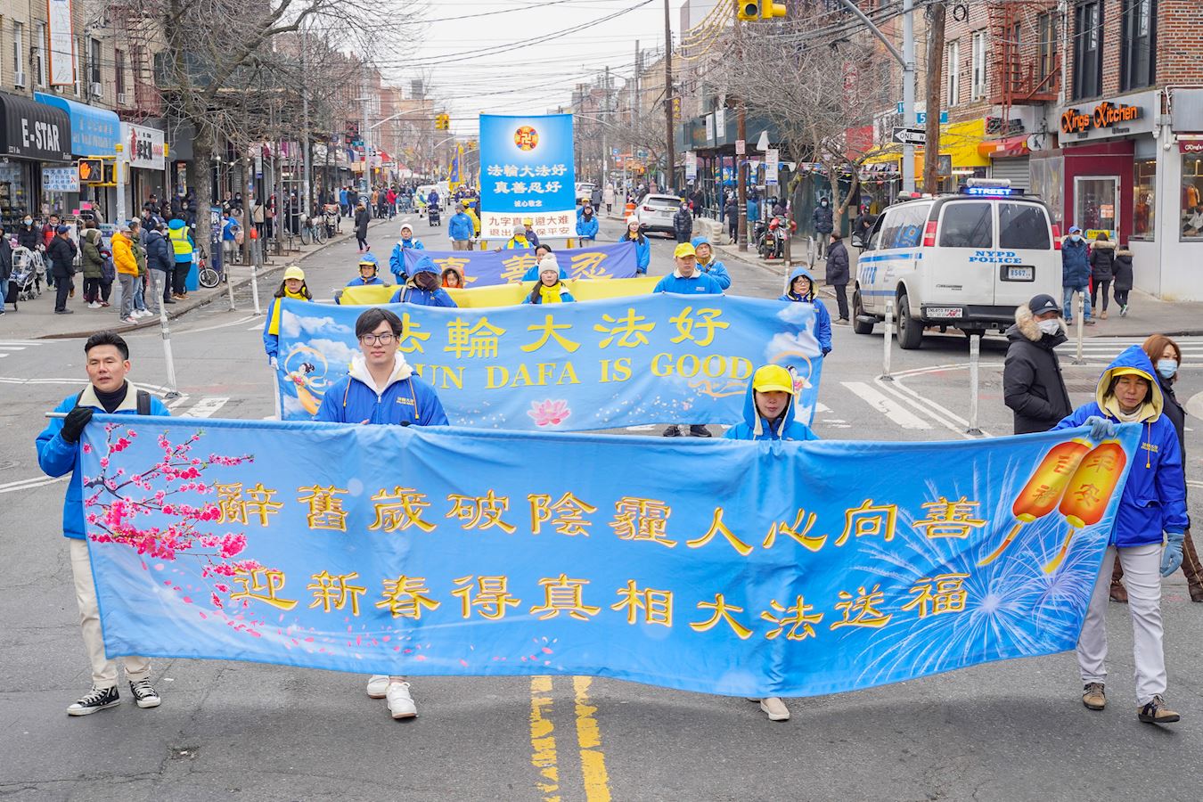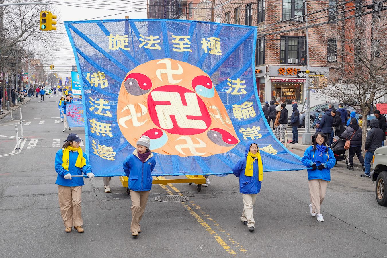 ![]() 图13~17:二零二三年二月二十六日(周日),大纽约地区的上千名法轮功学员,在纽约第三大华人社区---布碌崙(布鲁克林)八大道举行盛大游行。图为“停止迫害法轮功”方阵 |