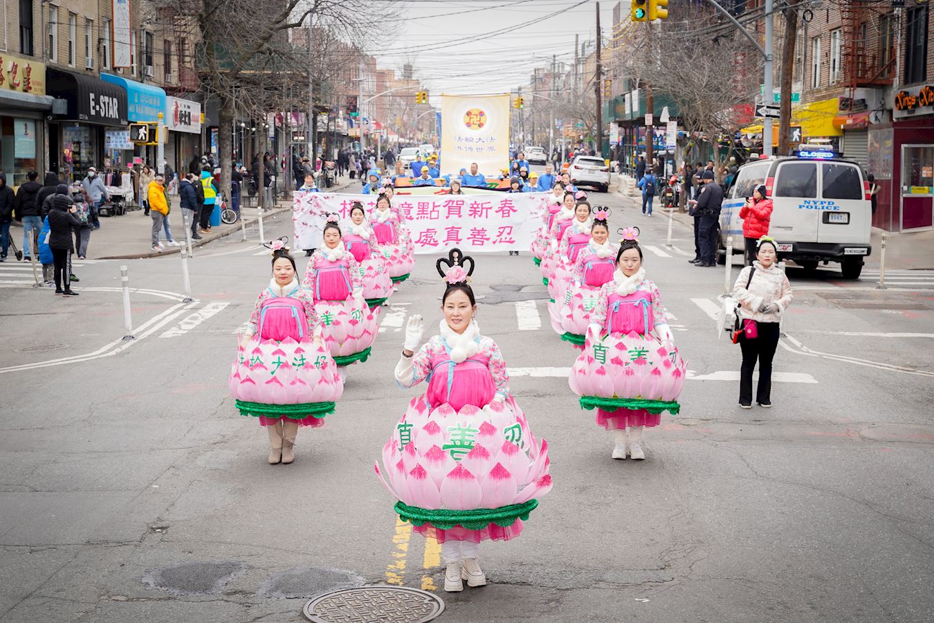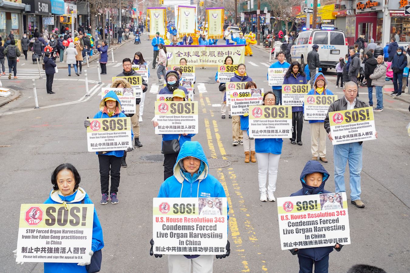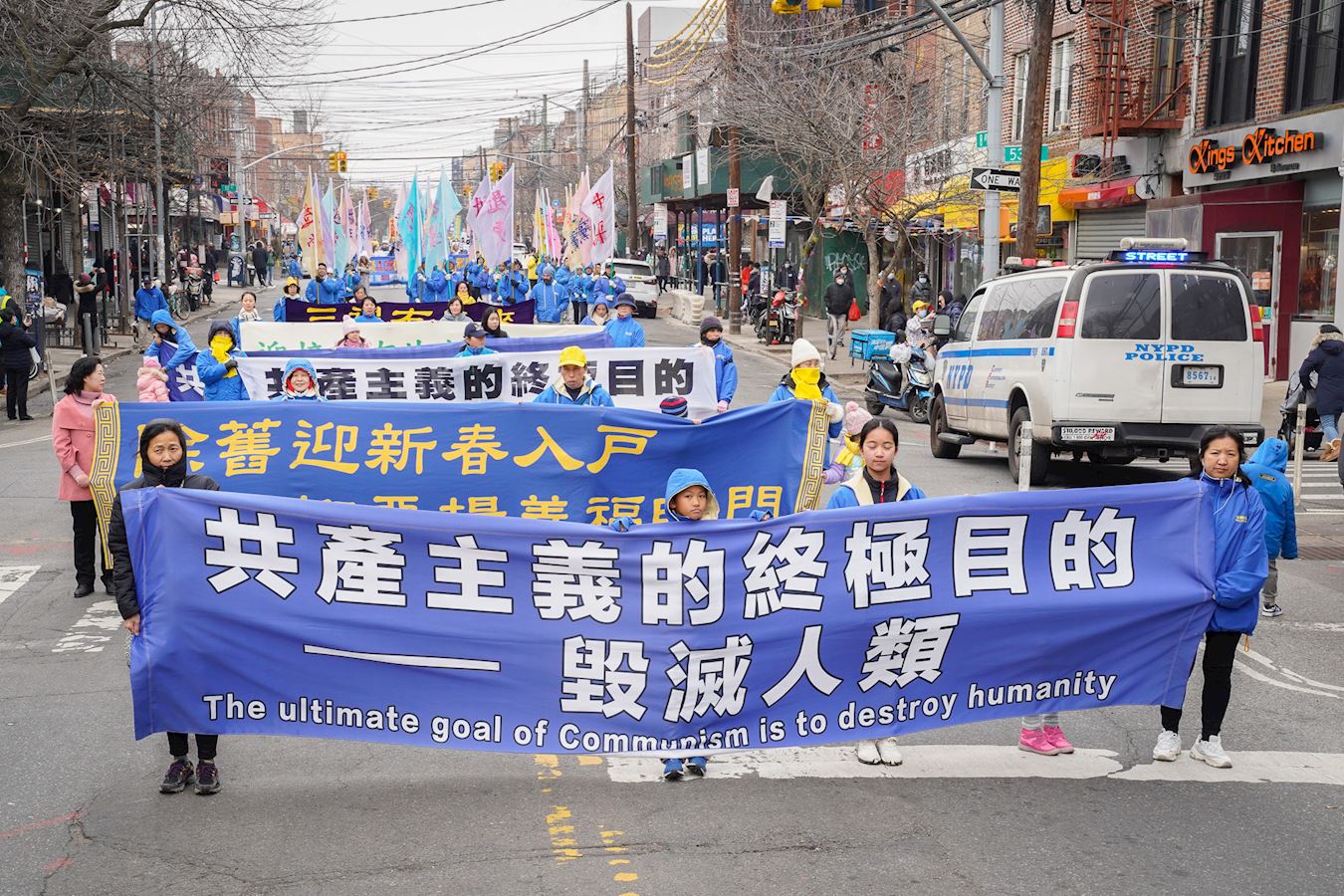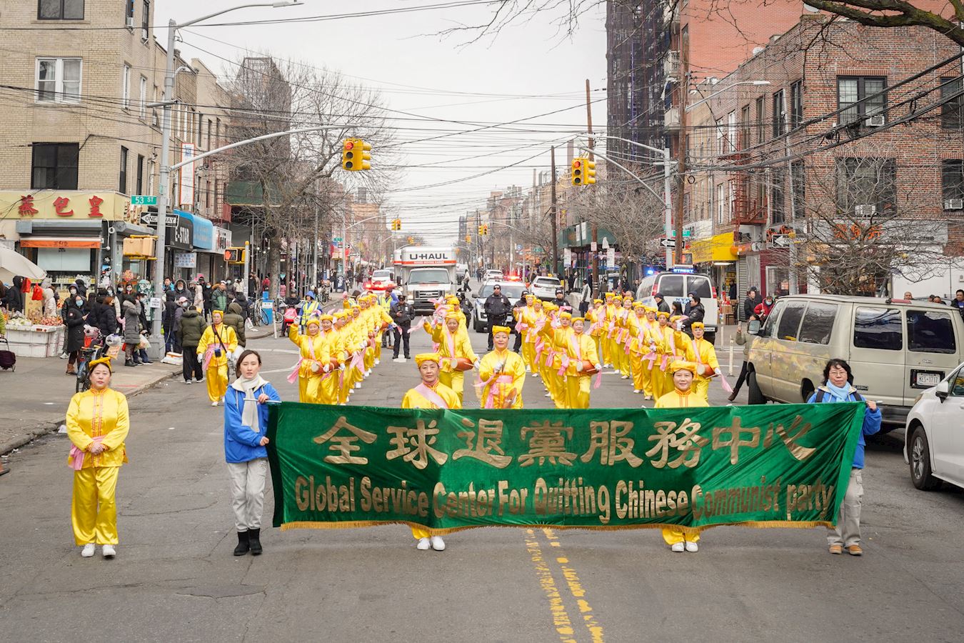 ![]() 图13~17:二零二三年二月二十六日(周日),大纽约地区的上千名法轮功学员,在纽约第三大华人社区---布碌崙(布鲁克林)八大道举行盛大游行。图为“停止迫害法轮功”方阵 |