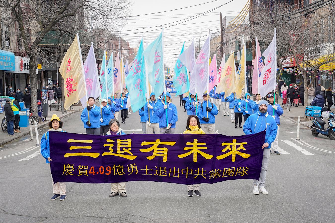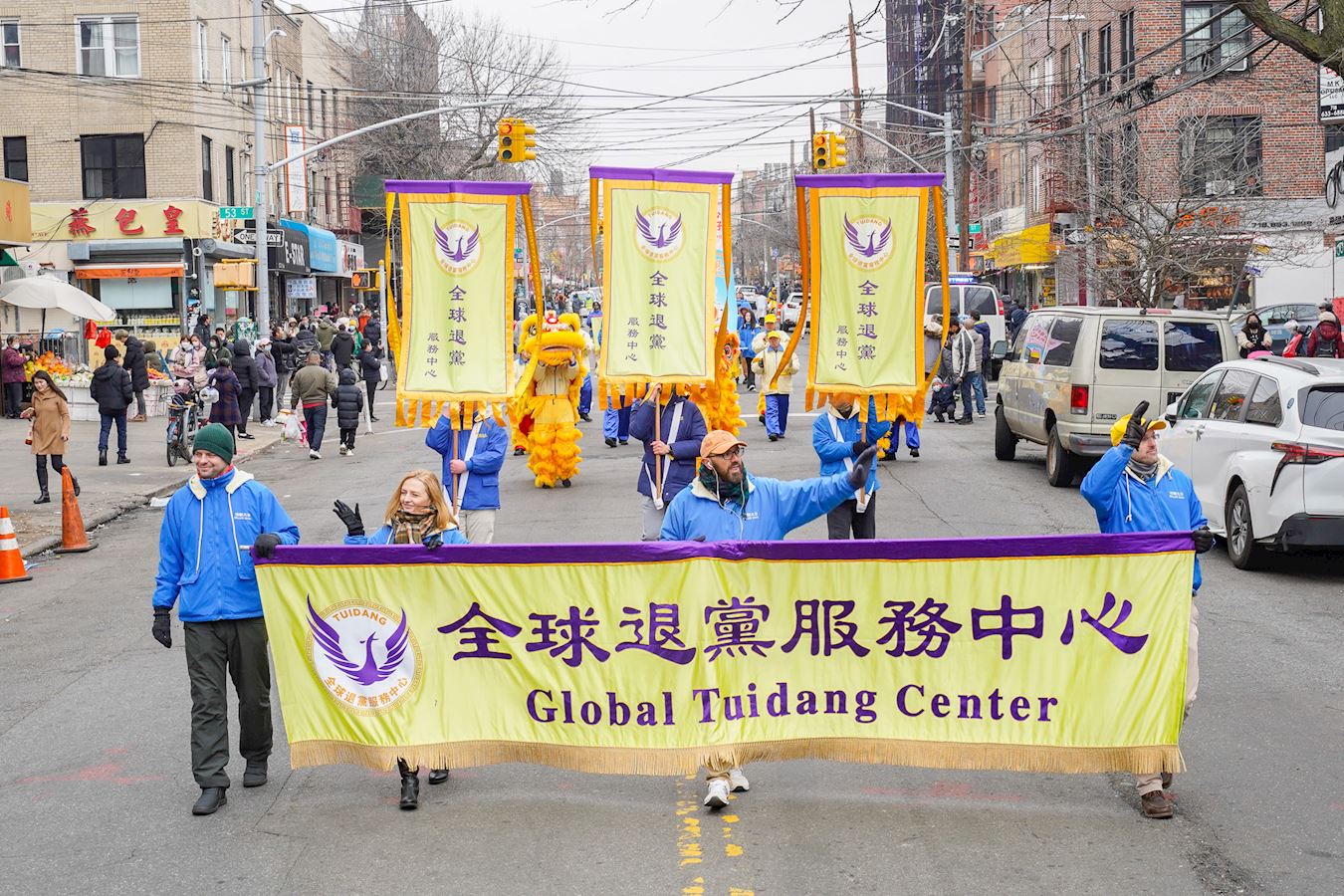 ![]() 图18~25:二零二三年二月二十六日(周日),大纽约地区的上千名法轮功学员,在纽约第三大华人社区---布碌崙(布鲁克林)八大道举行盛大游行。图为“三退保平安”方阵 |