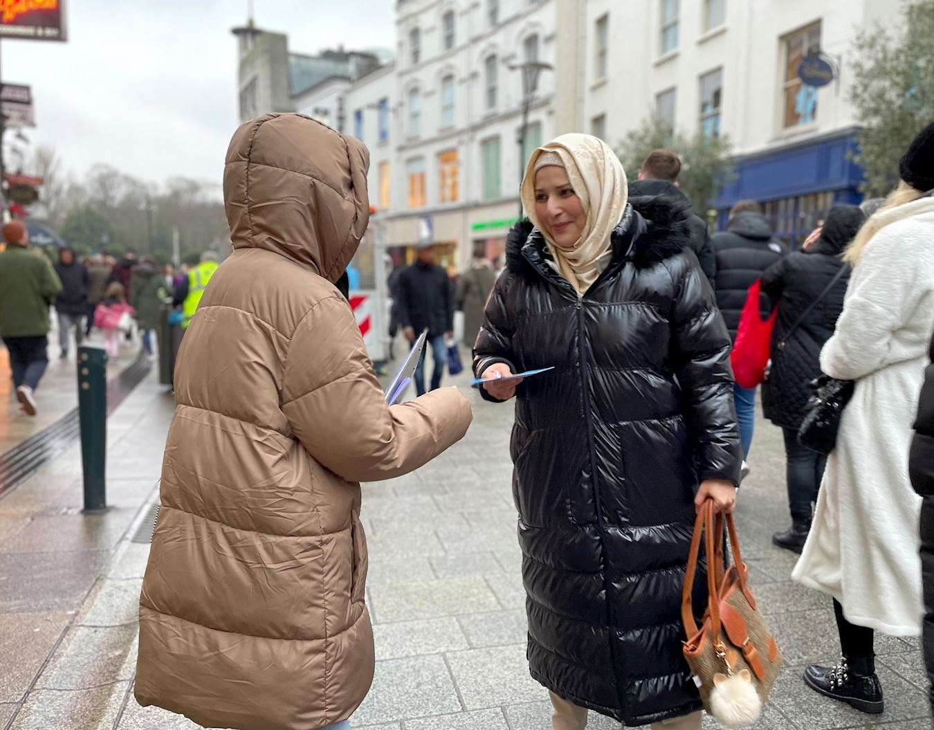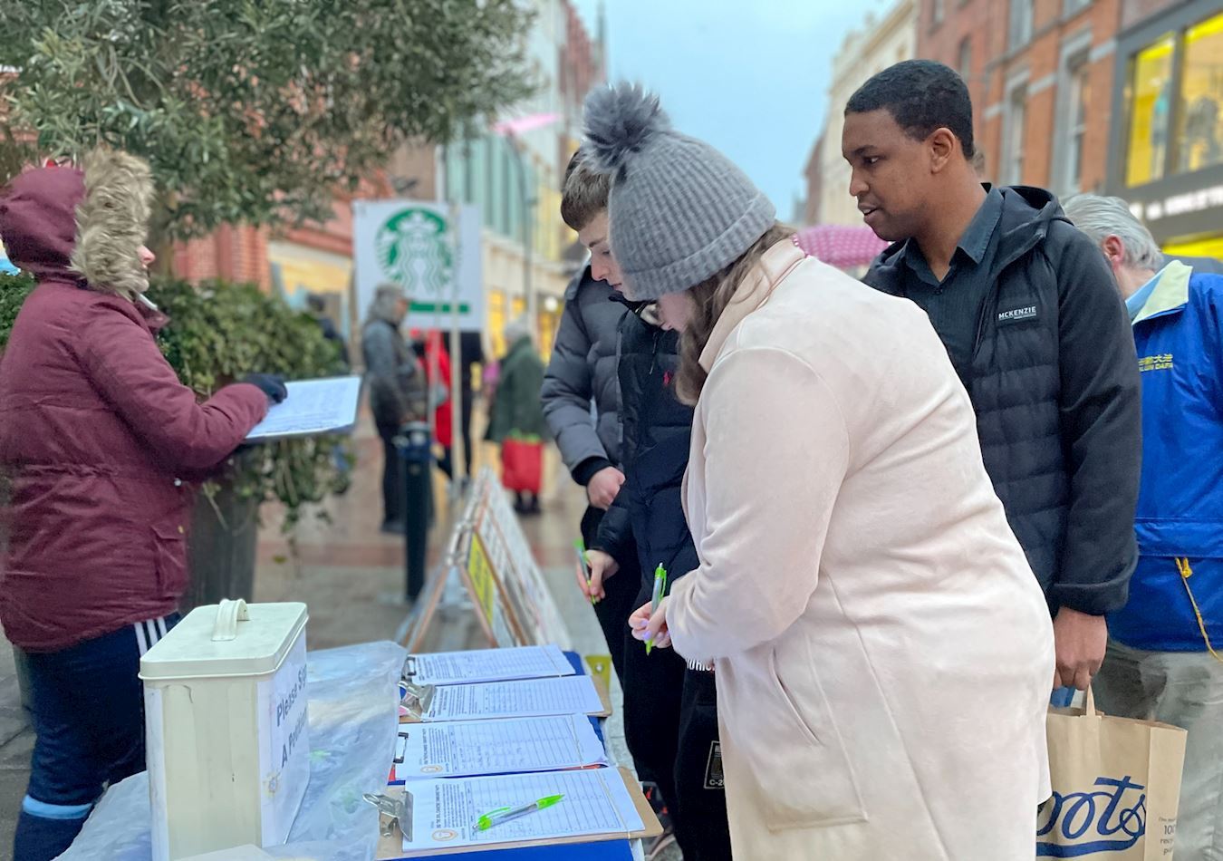 活动当日天气寒冷,不时有小雨飘落,然而渴望法轮功真相的民众并未受到影响。“在这样寒冷的天气里,你们依然还在这里,谢谢你们。”一位年轻的爱尔兰女士在得知真相后感动得对学员说,“你们做的是一件很有意义的事情。”许多人在了解到中共依然在用暴力打压这个平和的修炼团体后,深感震惊,表示要将信息传递给身边的亲友。