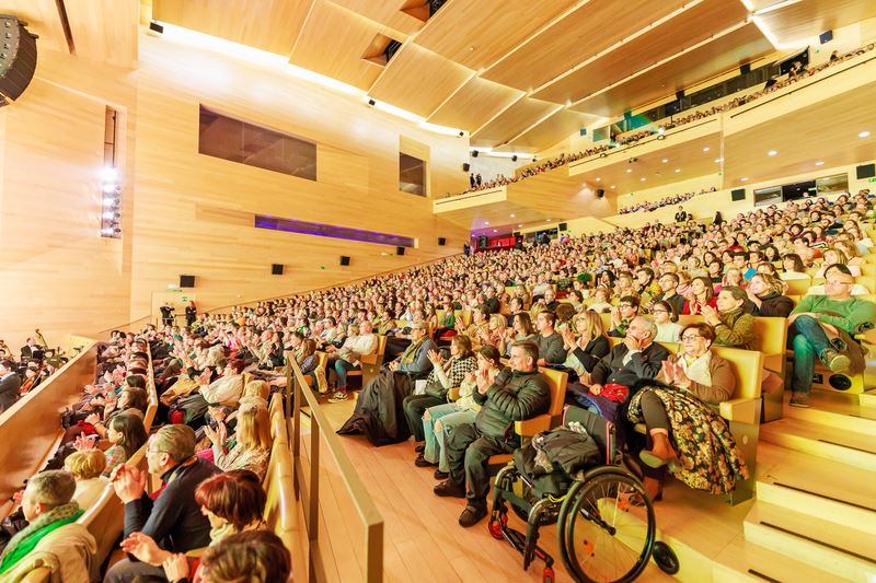![]() 图4:二零二三年三月二日和三日,美国神韵环球艺术团在波兰卢布林文化会议中心歌剧厅(The Centre for the Meeting of Cultures - Opera Hall)上演了两场演出,票房也是全部提前售罄。图为三月二日晚演出的现场盛况。(大纪元) |