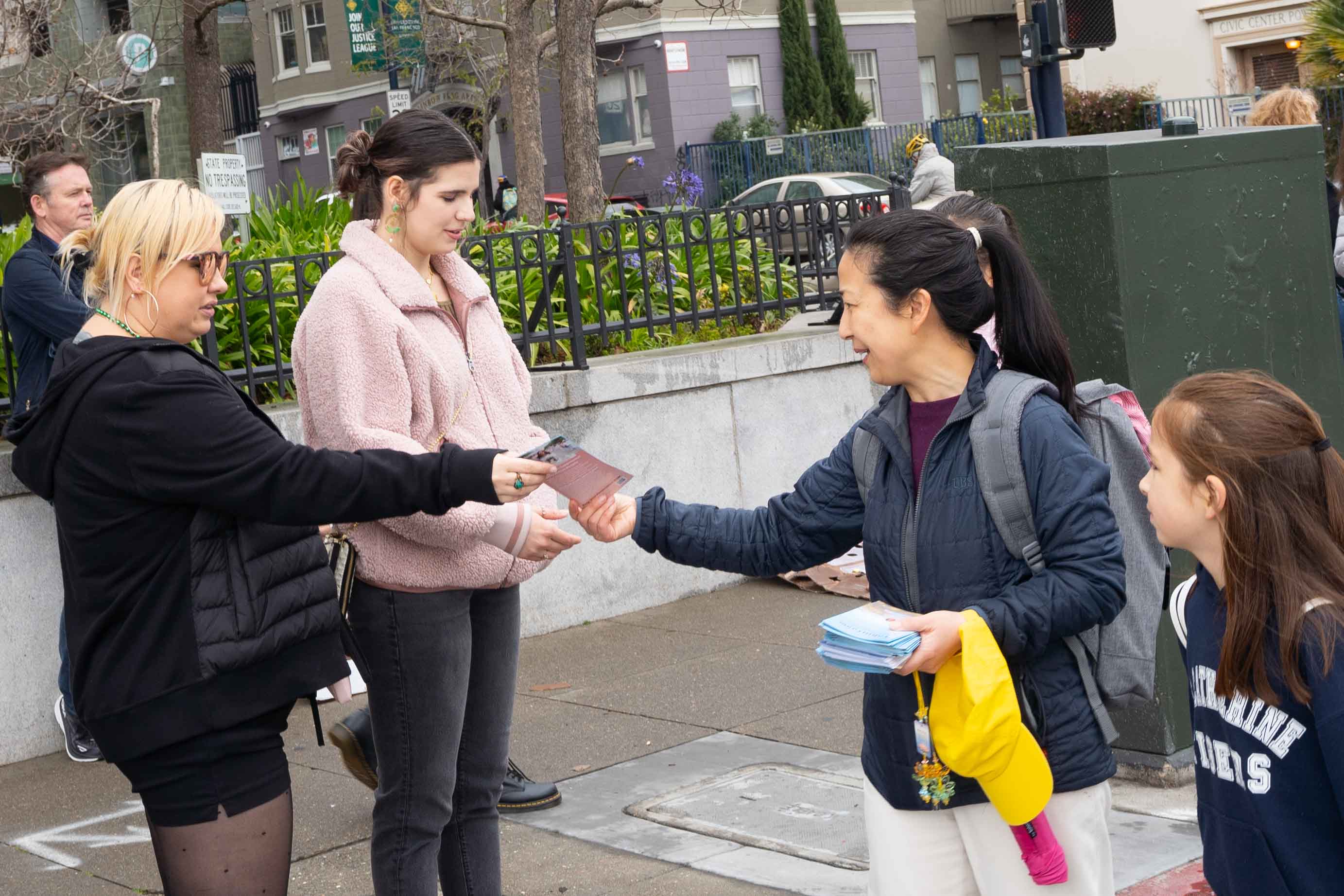 “法轮功真棒!”崔女士说,她一直都知道法轮功很好,“我知道有一本《转法轮》,我一直都想看,要是有这本书才好呢。但我不知道在哪里买?”学员告诉她可以上网站falundafa.org购买,她满意的记下。
