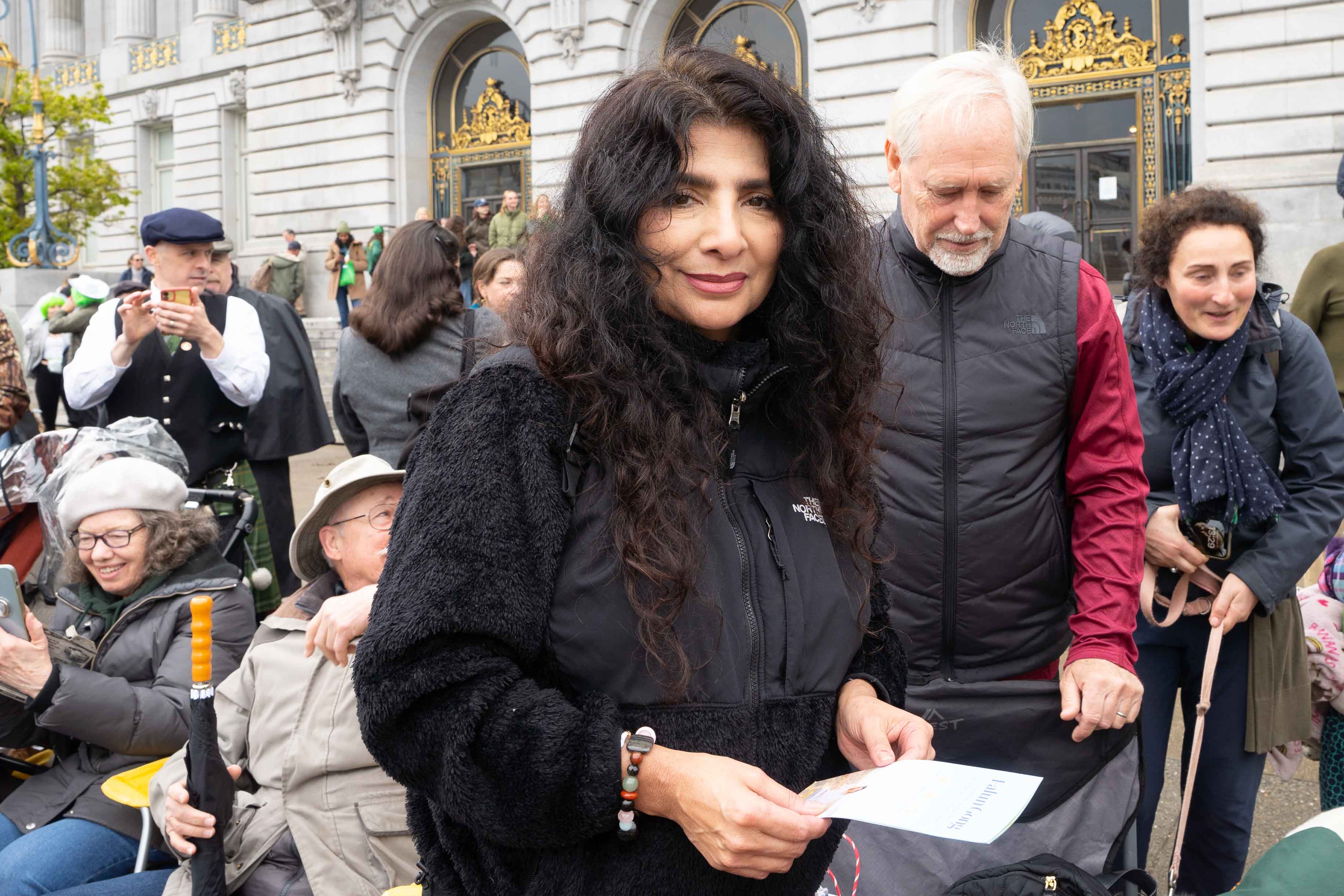 玛丽·泰勒(Mary Taylor)也高兴地说,“他们(法轮功学员)是我一生中见过的最好的队伍,精美绝伦。”她好奇地问:“他们是从哪里来的?”当她了解到这支队伍的成员是法轮功学员,他们来自湾区各地,法轮功的原则是真善忍,她说:“太好了,太好了,真善忍太好了,祝你们圣派翠克日快乐。”