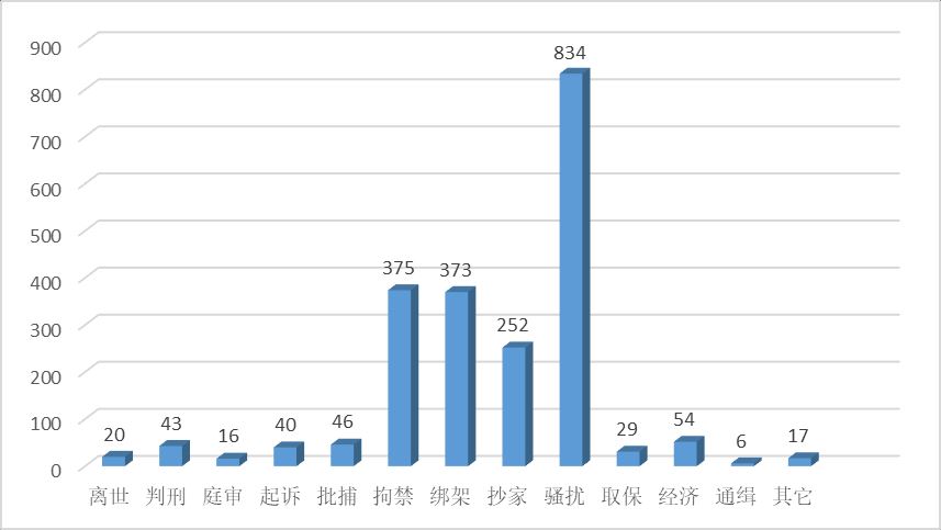 离世判刑庭审起诉批捕拘禁绑架抄家骚扰取保经济通缉其它合 计