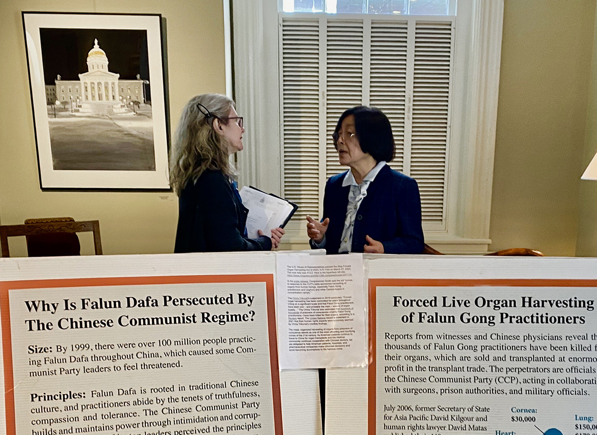 州众议员莫尼克·普雷斯特利(M. Prestley)看到活摘真相展板,表示支持在佛蒙特制定《结束强摘器官议案》,早日结束中共对法轮功学员的残酷迫害。
