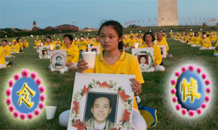 ![]() 图为海外法轮功学员进行烛光悼念。图中照片是法轮功学员卢兆峰。 |