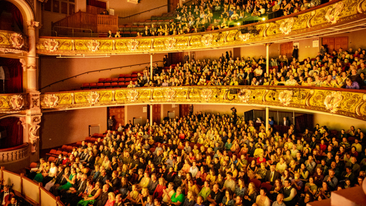 ![]() 图3:二零二三年四月十四日晚间,美国神韵世界艺术团在新西兰首都惠灵顿圣詹姆斯剧院的第二场演出圆满落幕。(大纪元) |